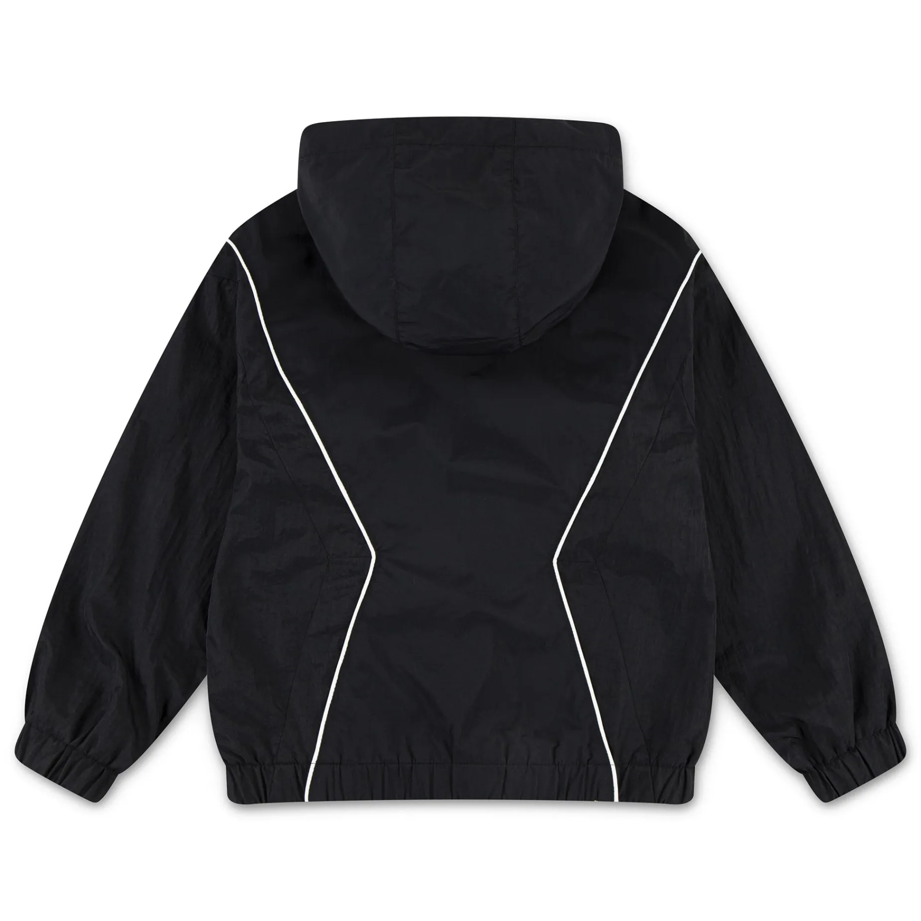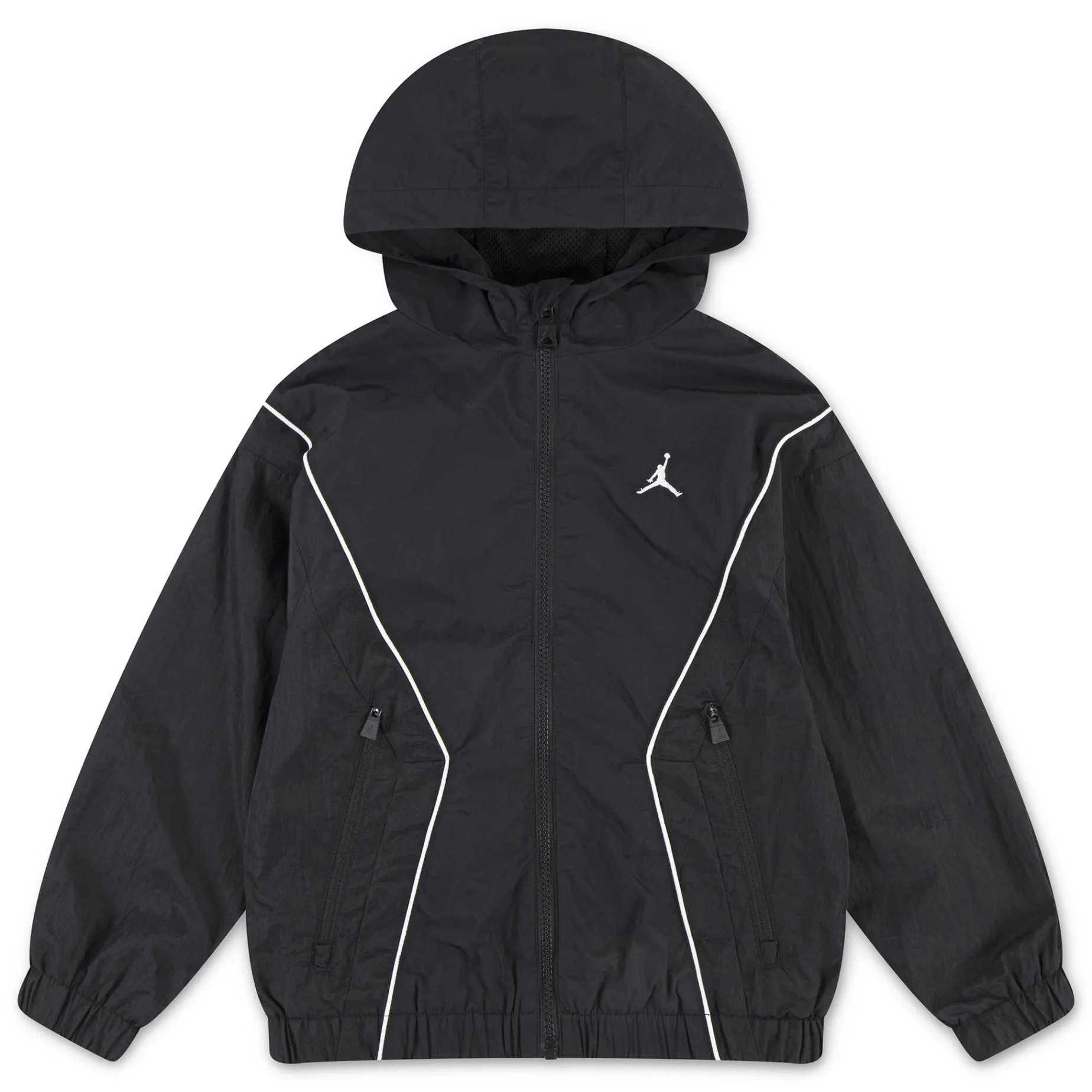 Made of lightweight nylon fabric, this Jordan jacket is a great grab-and-go. It has a roomy cut and a full-zip closure than make layering easy, dropped shoulders create a relaxed feel, and zippered pockets help secure small items like your cash, keys, or phone. The elasticized cuffs and hem help secure the fit and retain warmth in chilly winds, while the hood and water resistant finish helps you stay dry in light rains.Â