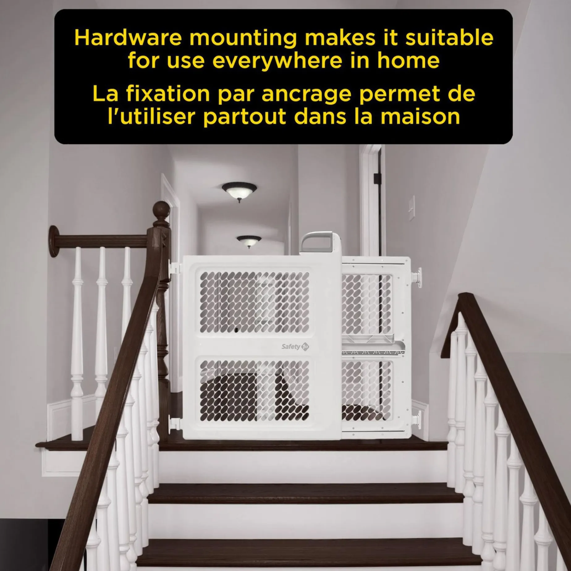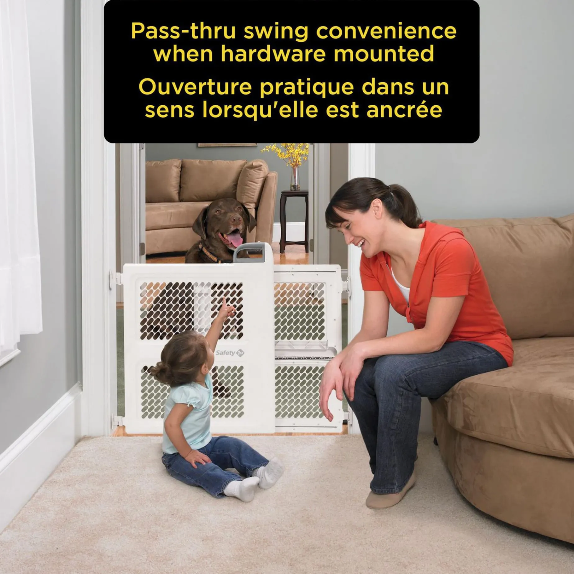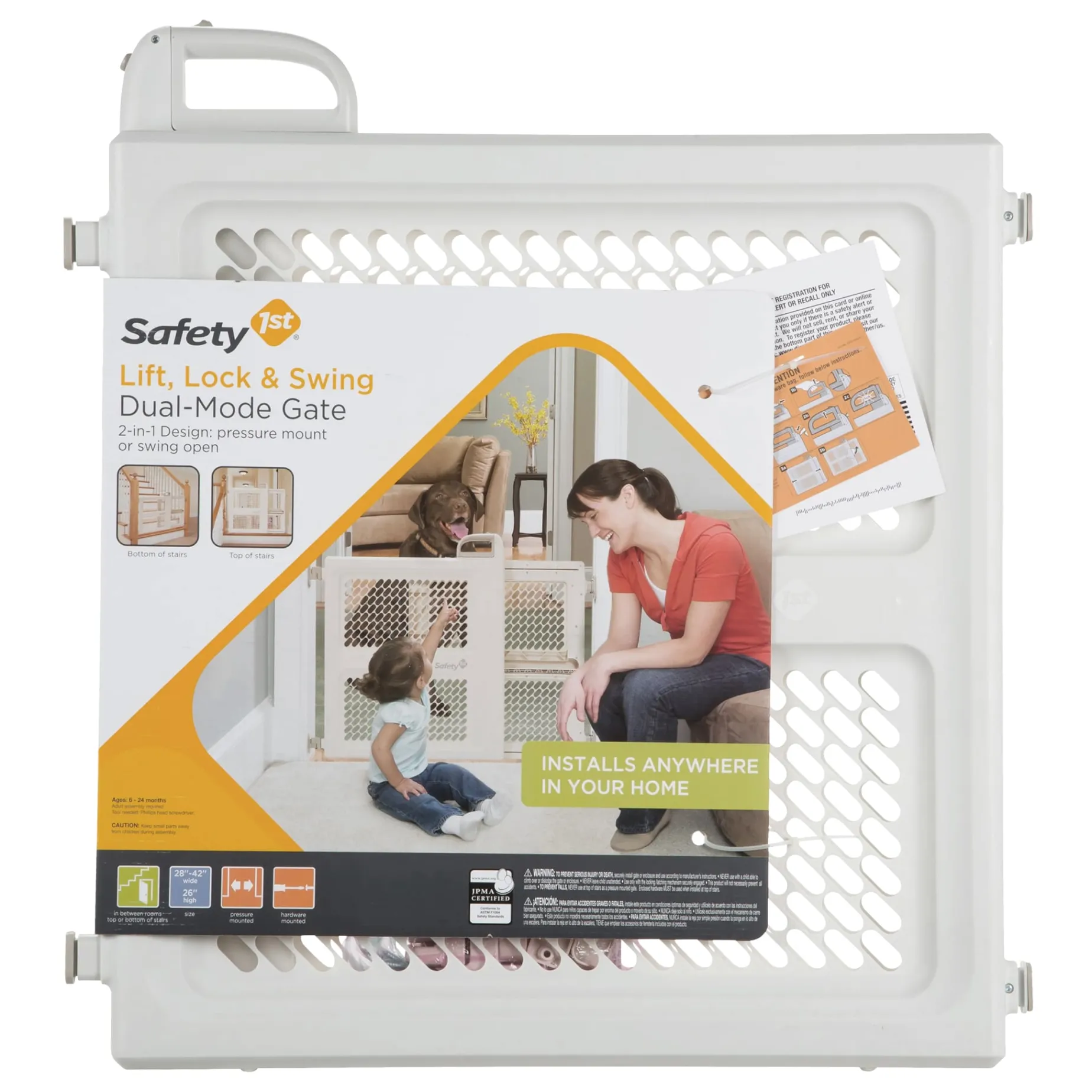 Are you looking for a barrier to use throughout the house? The Safety 1st Lift, Lock & Swing 2 in 1 barrier with unique design can be used in one of two modes. You decide which mode best suits your needs: anchor it at the top of the stairs for maximum security as a swing gate or snap it into your door frame for easy removal when not. not used. In both modes, the gate keeps your baby away from out-of-bounds areas. It also has a SecureTech â„¢ indicator that lets you see when it is securely locked in place. For ease of use, the 26 ” (66cm) high gate also features a handle on the top that allows you to lock, open and adjust as needed.
