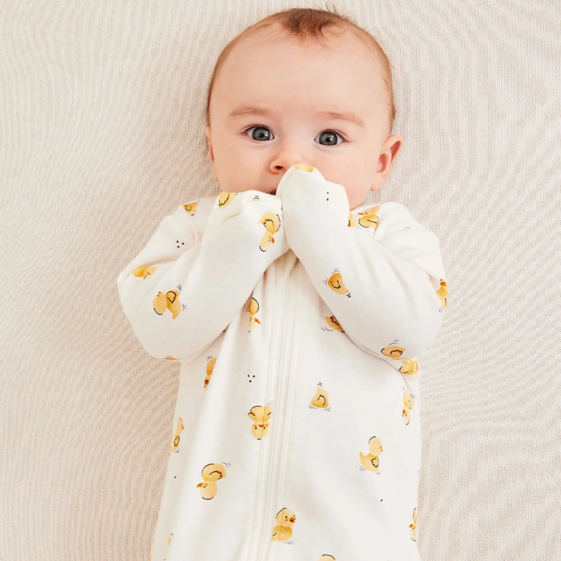 Lightweight and breathable, this adorable sleeper is perfect for wrapping them up after a bath. With the rubber duck design, baby can go straight from the bathtub to the crib with his funny friend.