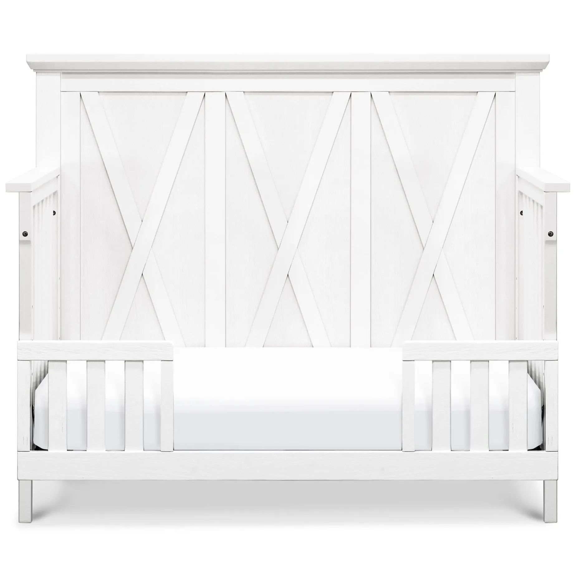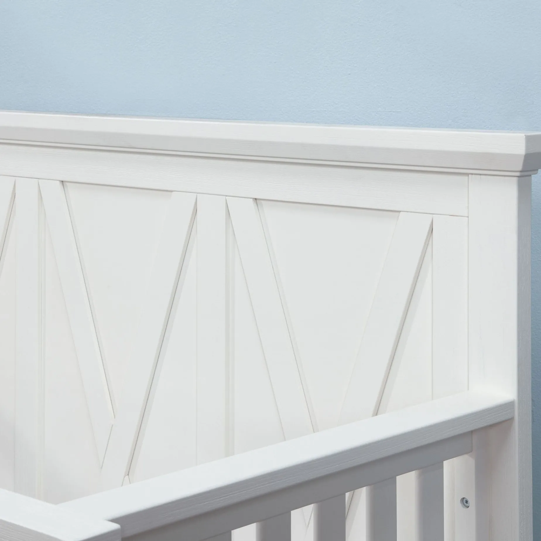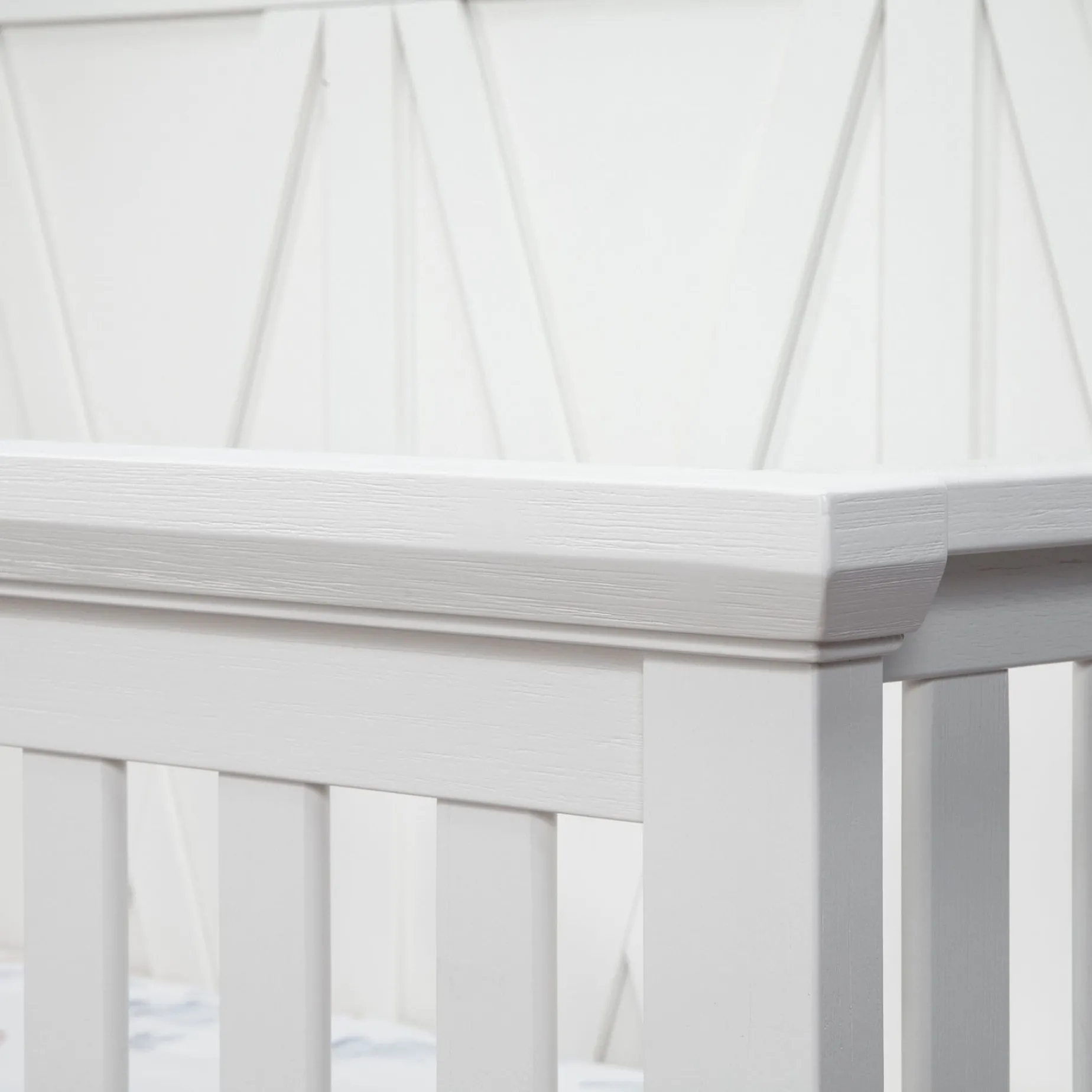 Made from solid Poplar hardwood and finished in beautifully textured finishes, the Emory Farmhouse 4-in-1 Convertible Crib adds a refined rustic feel to any nursery. The timeless Emory Farmhouse Crib grows with your child by converting a toddler bed, daybed, and full-size bed.