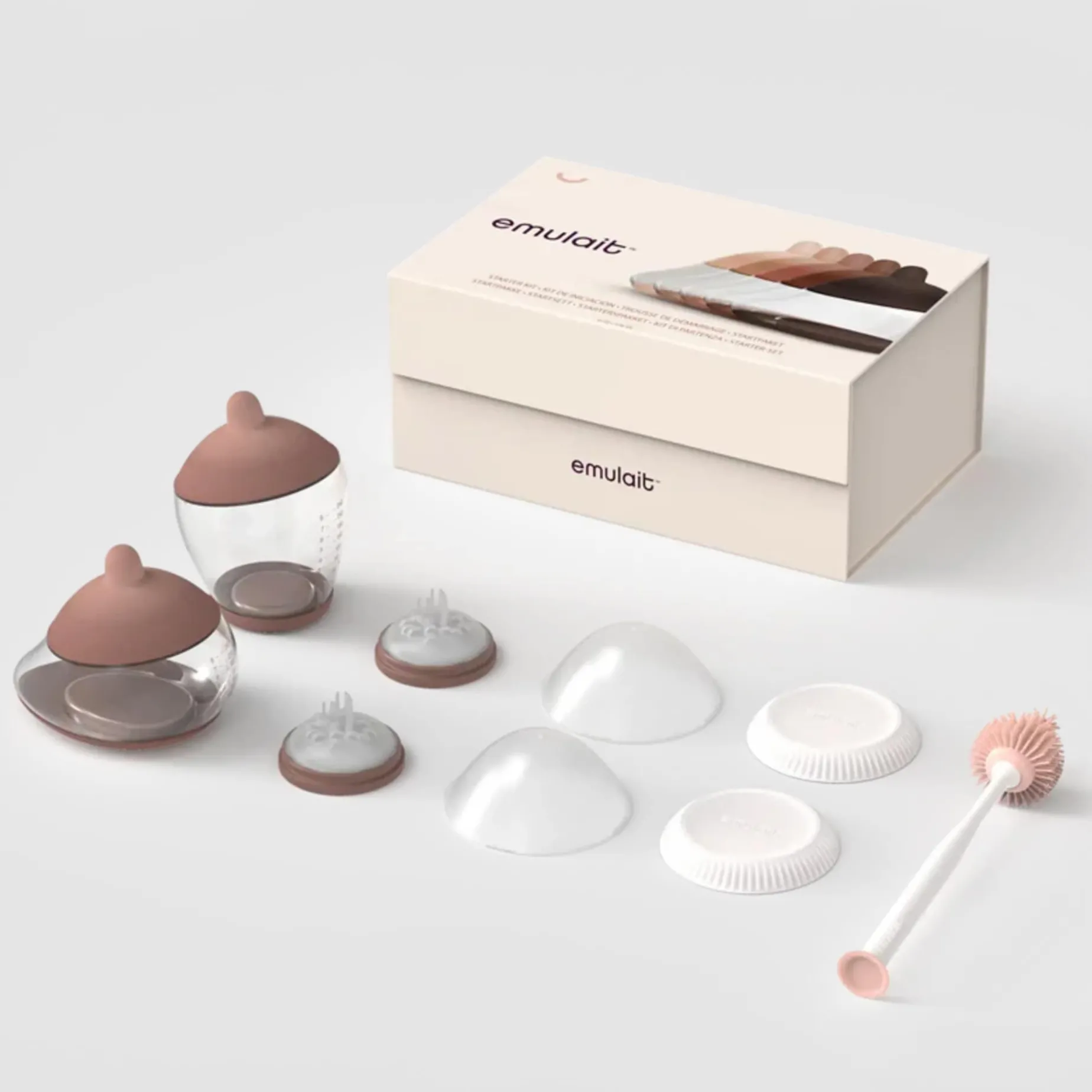 The Emulait Starter Kit includes Anatomical and Classic bottles to provide you with versatility and flexibility. The Anatomical bottle is designed for deep and meaningful feeds, while the Classic bottle offers a sleek design ideal for feeding on the go.
