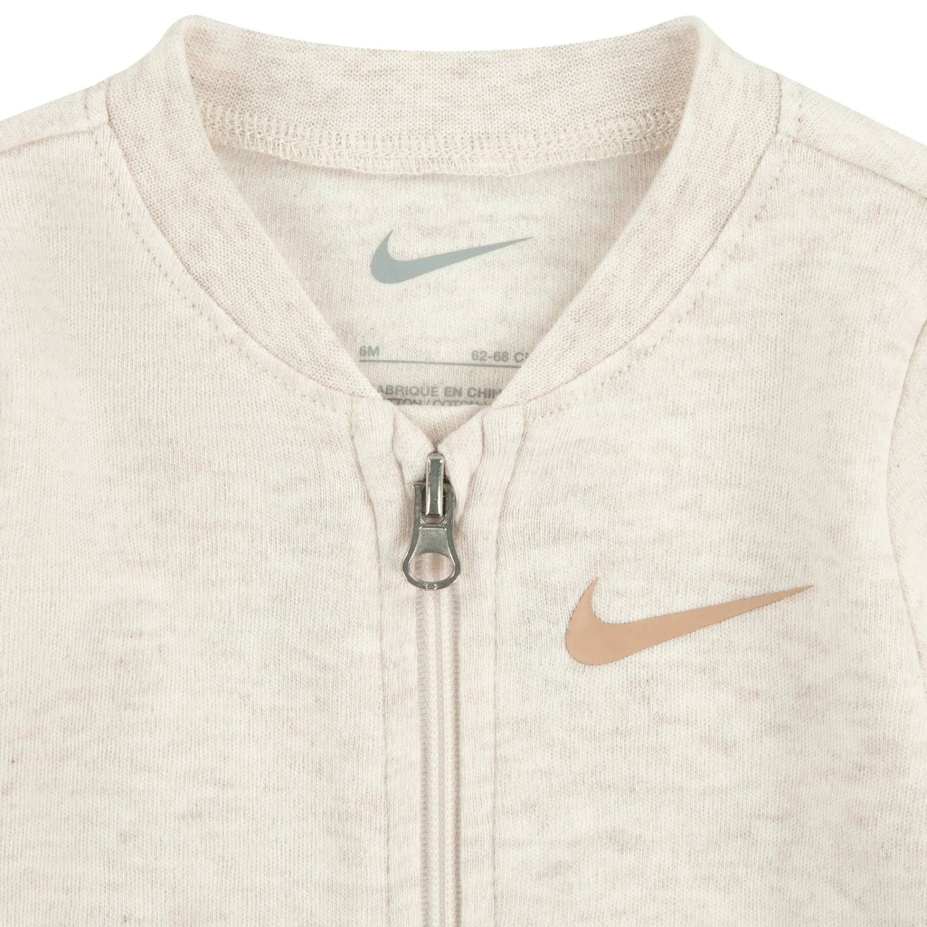 Easily dress future athletes in this Nike coverall, which is made of soft cotton/poly knit fabric that feels gentle and smooth on baby’s precious skin. The 2-way zip closure makes changing, dressing, or layering over a bodysuit easy, while the foldover mittens on the sleeves and the footed bottom help keep tiny fingers and toes toasty.