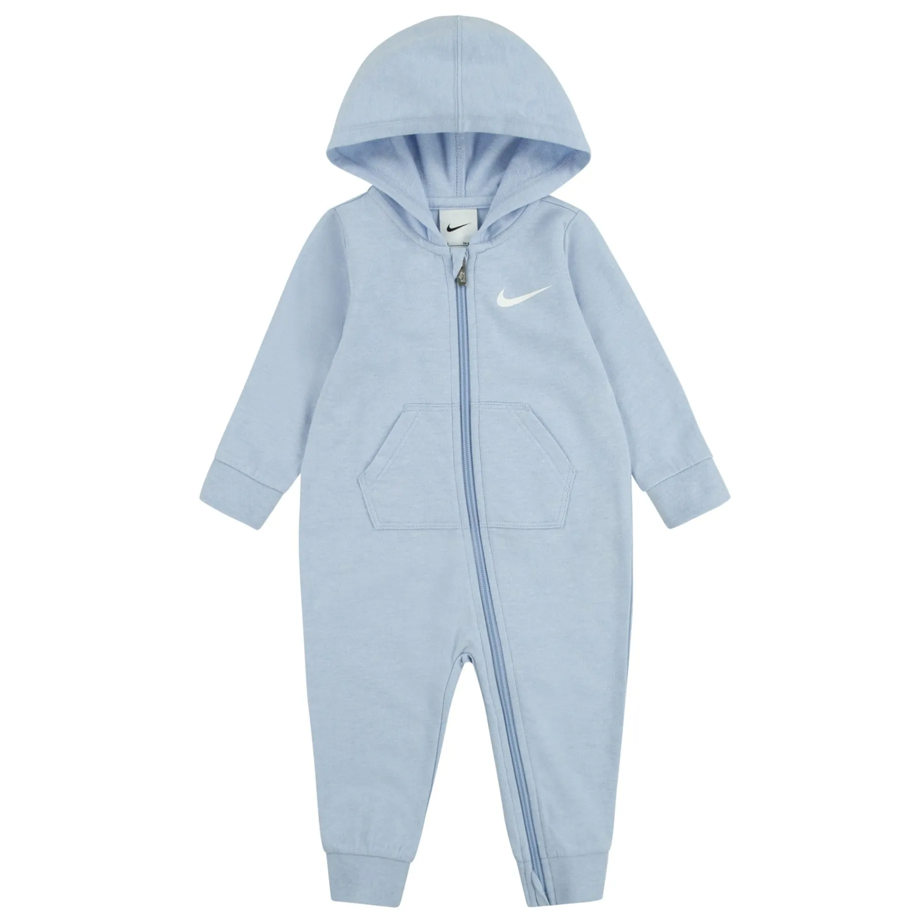 Put the smallest athletes in cozy comfort with this Nike coverall, made of soft baby French terry that feels gentle on baby’s sensitive skin. The hood provides optional extra warmth, and the full-zip closure makes changing, dressing or layering over a bodysuit easy.