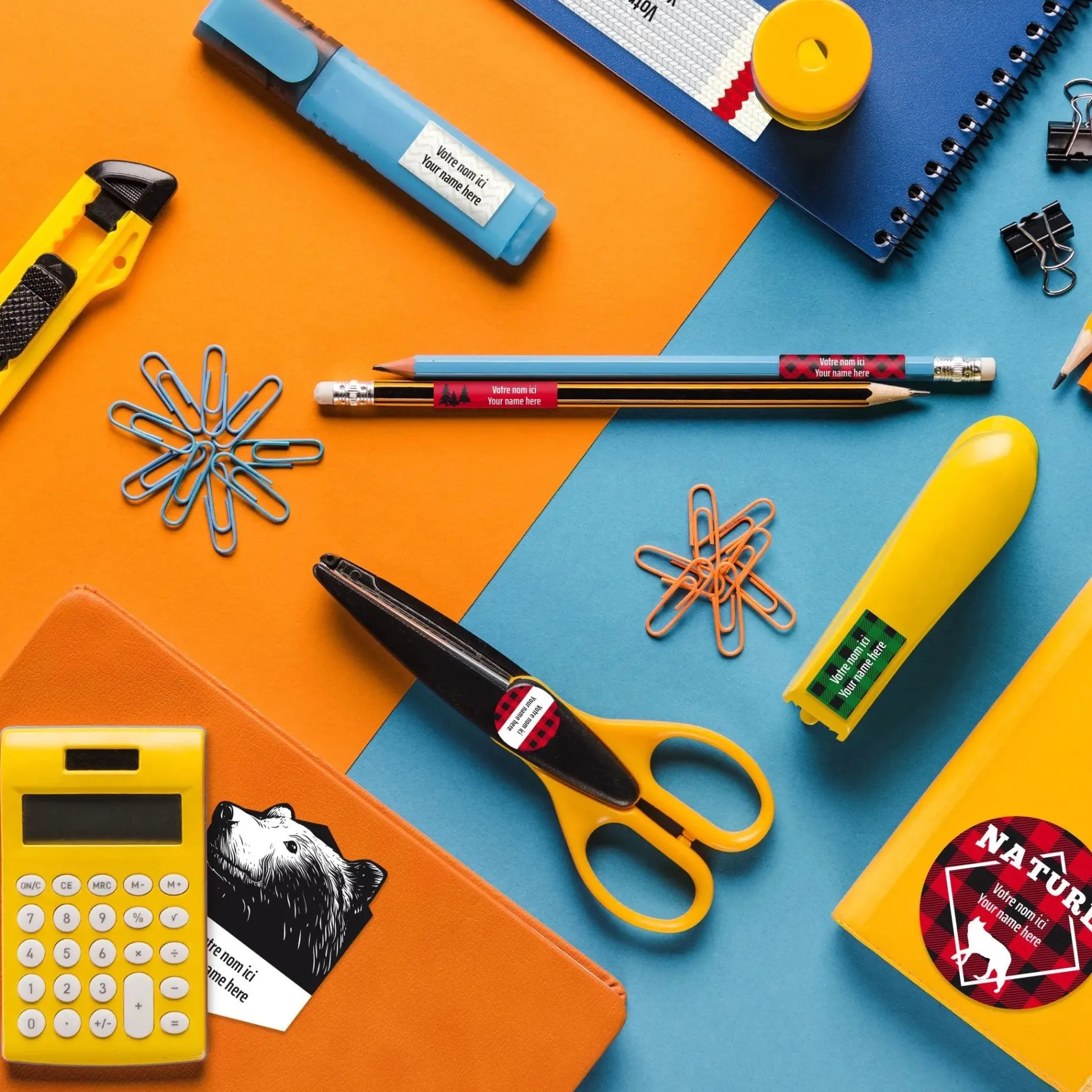The set of personalized sticky labels ClĂ©ment becomes your best ally for the quick identification of your family’s personal items. In a few seconds, young and old will be able to recognize their school items, lunchbox items, sports equipment, shoes, clothes, etc. Waterproof and durable, the labels are not afraid of freezing, water, heat, or steam. They are resistant to the microwave, refrigerator, freezer, dishwasher, washing machine, and dryer.