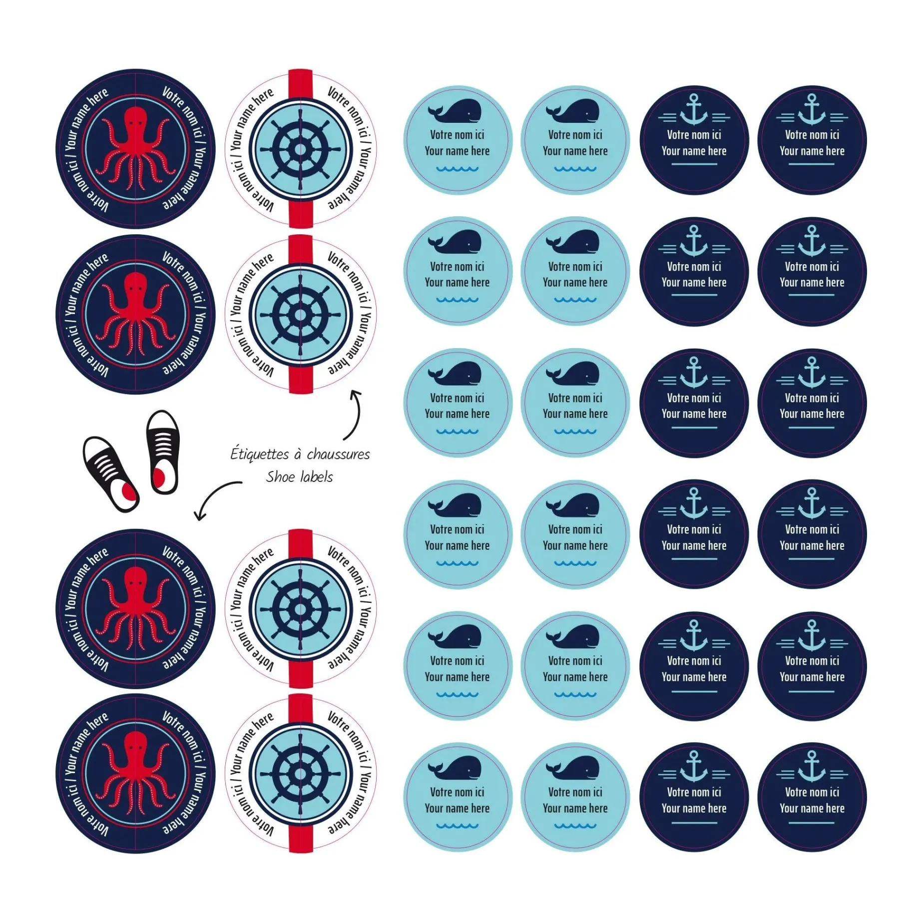 The set of personalized sticky labels Clément becomes your best ally for the quick identification of your family’s personal items. In a few seconds, young and old will be able to recognize their school items, lunchbox items, sports equipment, shoes, clothes, etc. Waterproof and durable, the labels are not afraid of freezing, water, heat, or steam. They are resistant to the microwave, refrigerator, freezer, dishwasher, washing machine, and dryer.