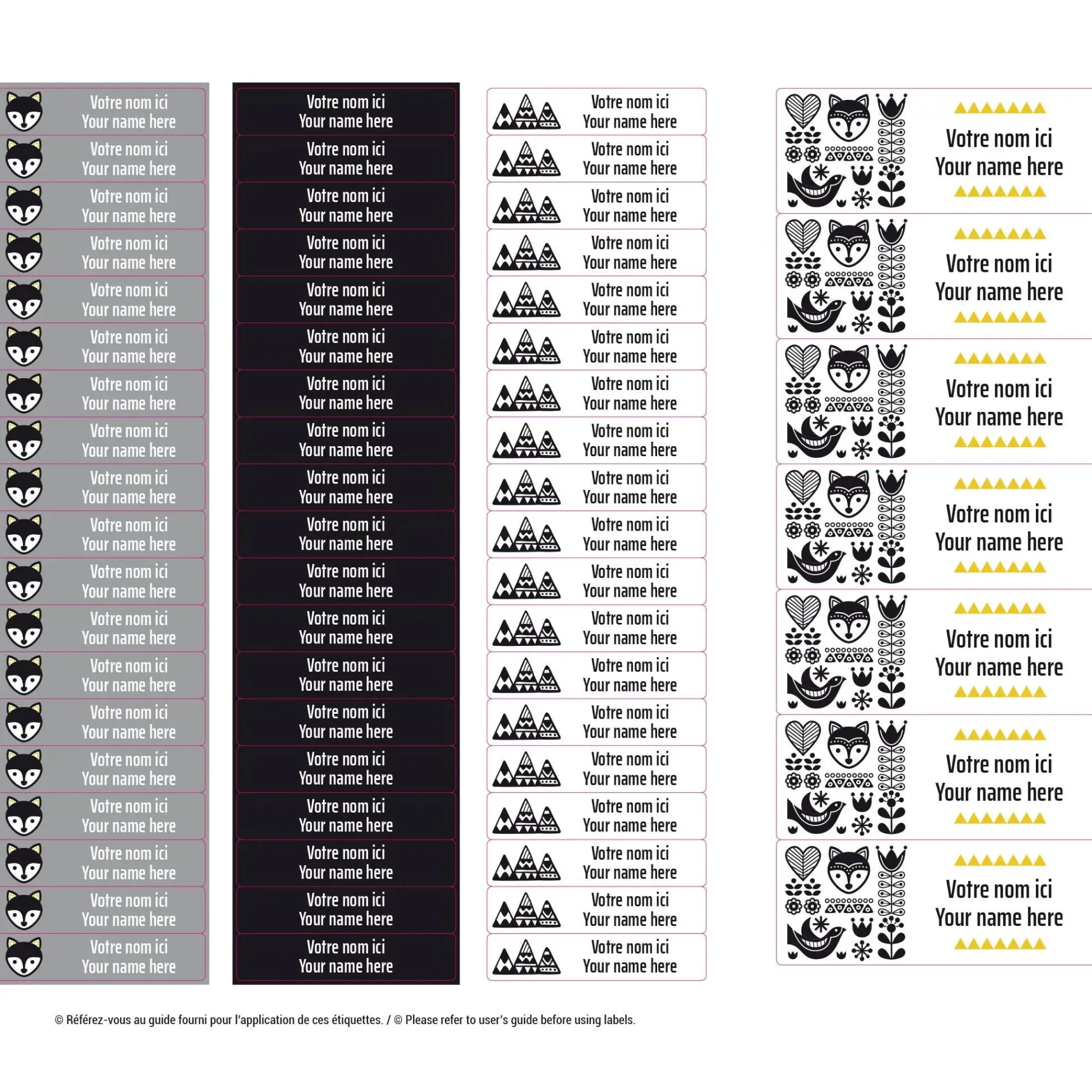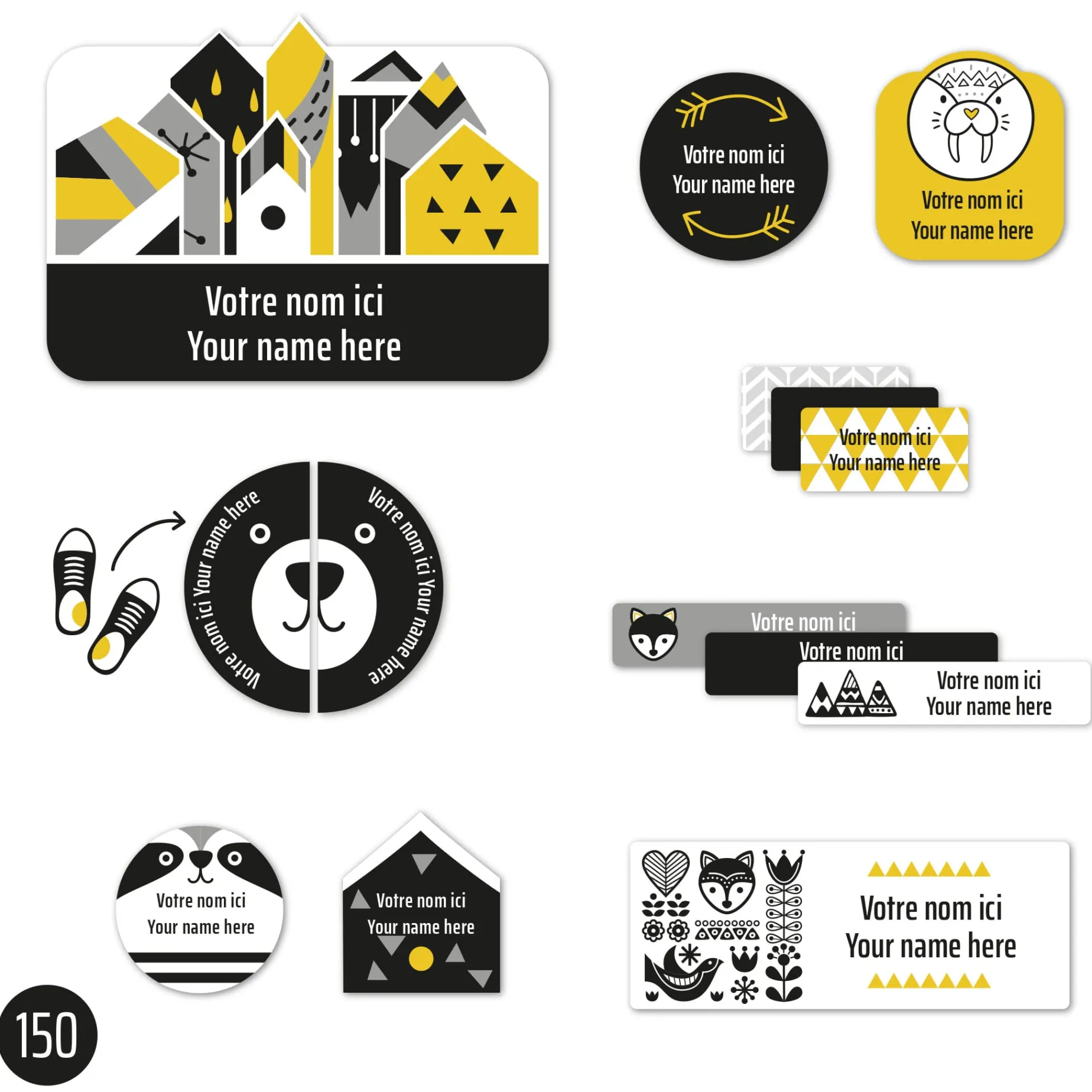The set of personalized sticky labels Clément becomes your best ally for the quick identification of your family’s personal items. In a few seconds, young and old will be able to recognize their school items, lunchbox items, sports equipment, shoes, clothes, etc. Waterproof and durable, the labels are not afraid of freezing, water, heat, or steam. They are resistant to the microwave, refrigerator, freezer, dishwasher, washing machine, and dryer.