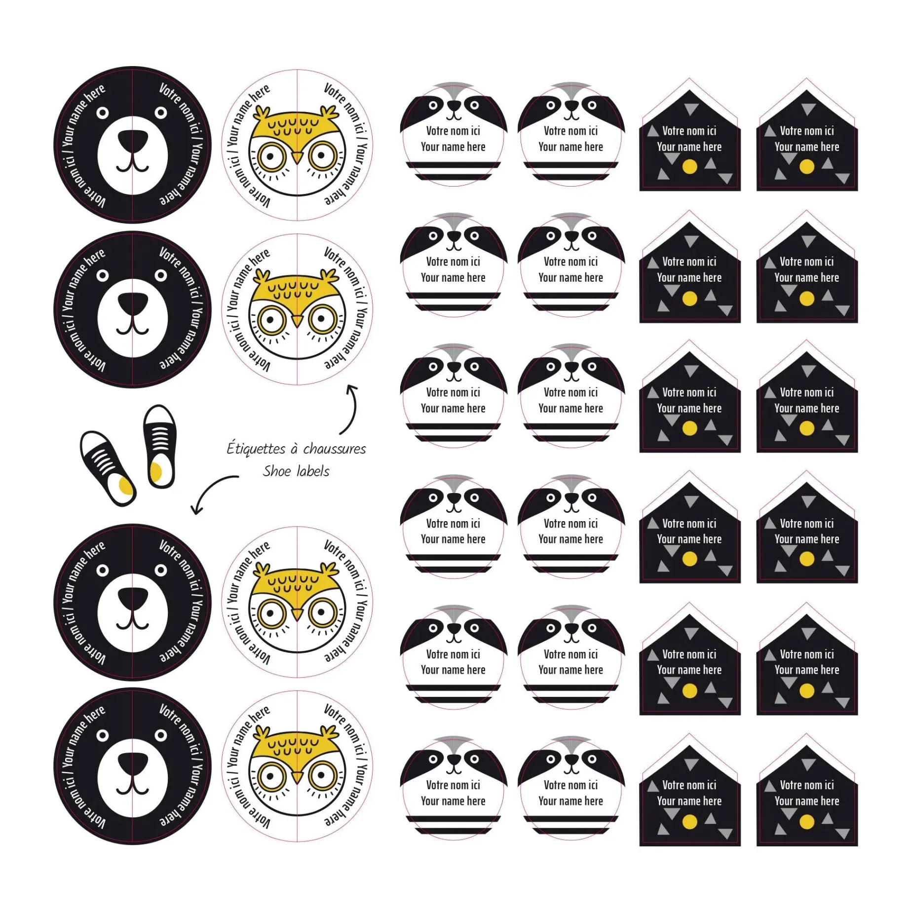 The Essential Edition offers the perfect balance to accompany children from daycare to school. It contains 150 self-adhesive labels in various sizes, ideal for marking both small and larger items. It also includes 8 pairs of labels specially designed for shoes, making it easier for children to manage their morning routine independently. Resistant to water, cold, heat, and steam, they are dishwasher, washing machine, dryer, microwave, freezer, and refrigerator safe. No ironing required. Simply apply them to a clean, dry surface and allow 24 hours for them to dry before exposing them to moisture. Each label is personalized with a name and/or phone number printed on two lines of 16 characters.