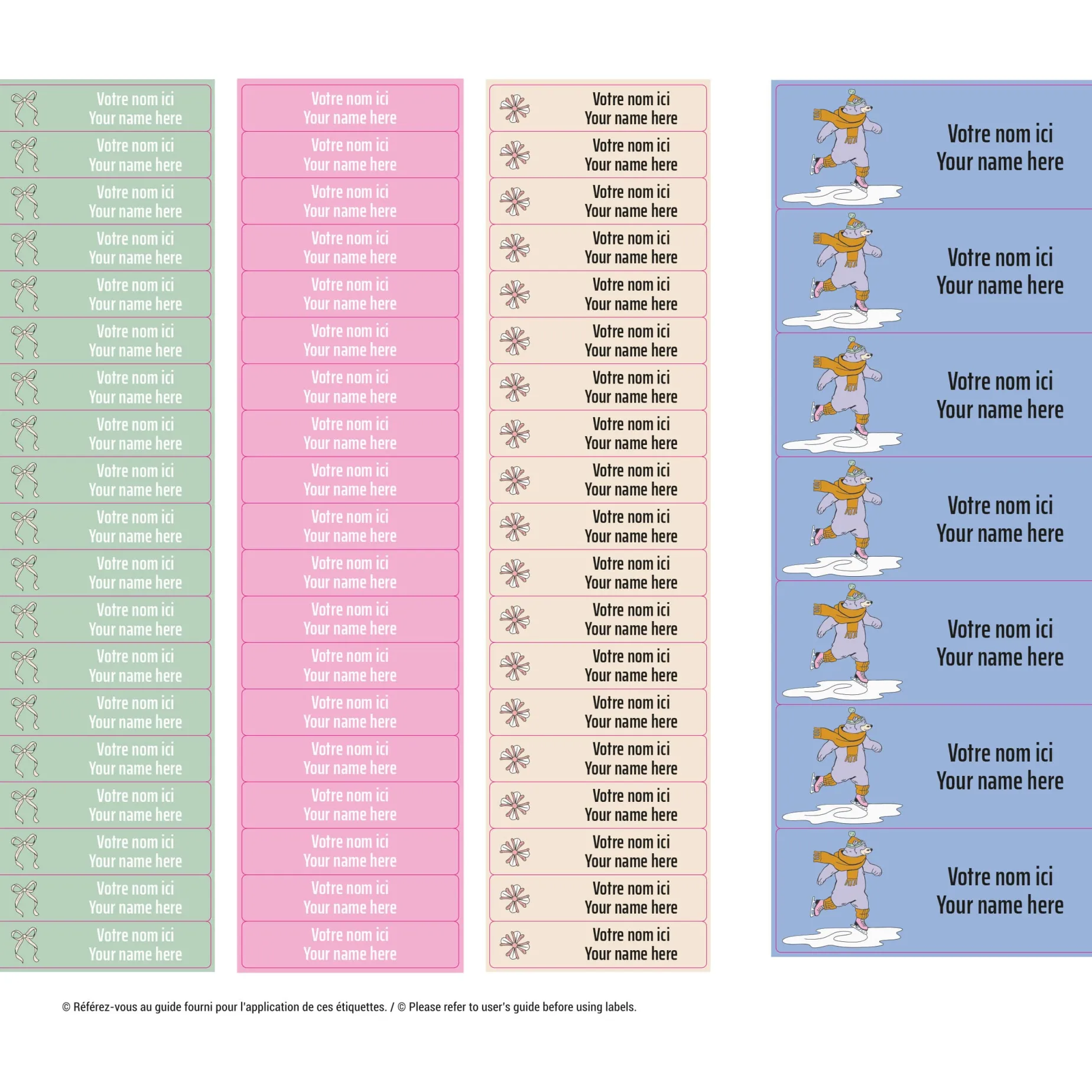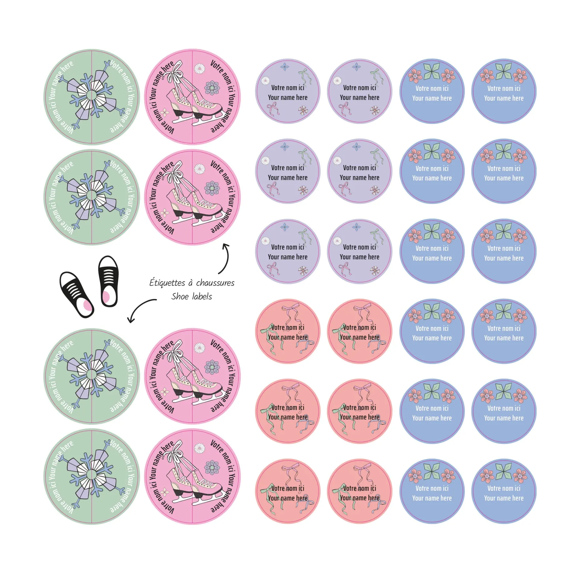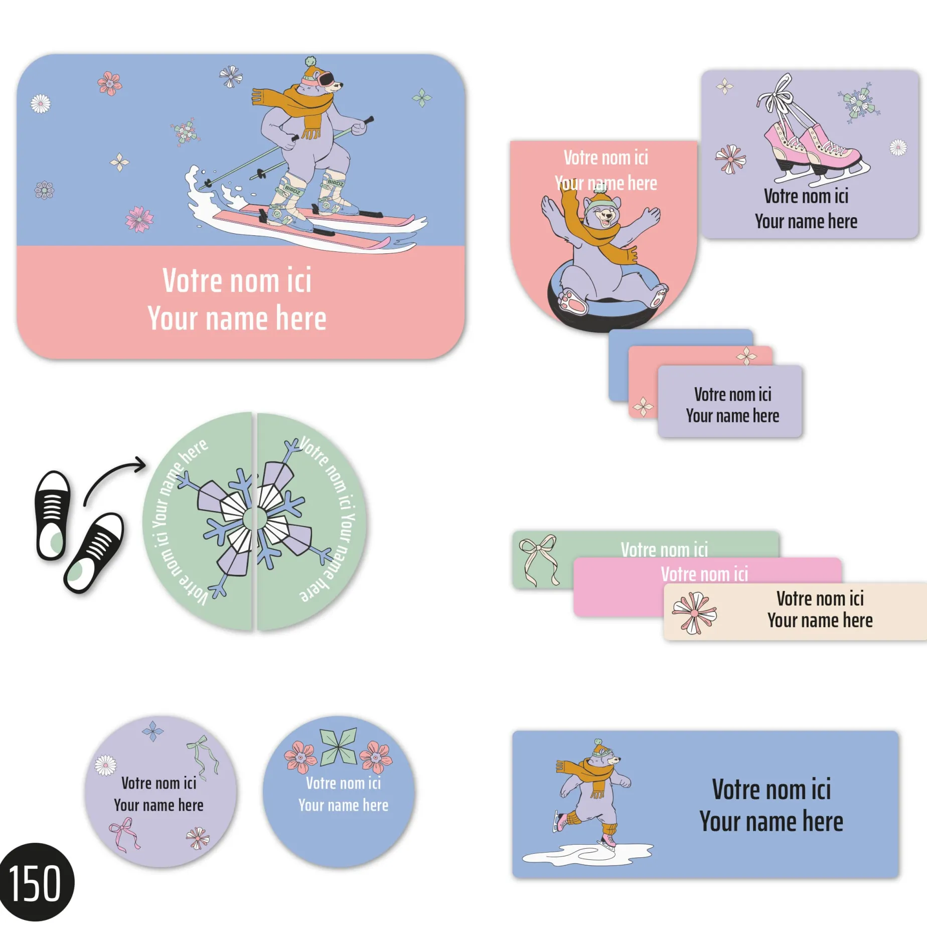 The Essential Edition offers the perfect balance to accompany children from daycare to school. It contains 150 self-adhesive labels in various sizes, ideal for marking both small and larger items. It also includes 8 pairs of labels specially designed for shoes, making it easier for children to manage their morning routine independently. Resistant to water, cold, heat, and steam, they are dishwasher, washing machine, dryer, microwave, freezer, and refrigerator safe. No ironing required. Simply apply them to a clean, dry surface and allow 24 hours for them to dry before exposing them to moisture. Each label is personalized with a name and/or phone number printed on two lines of 16 characters.