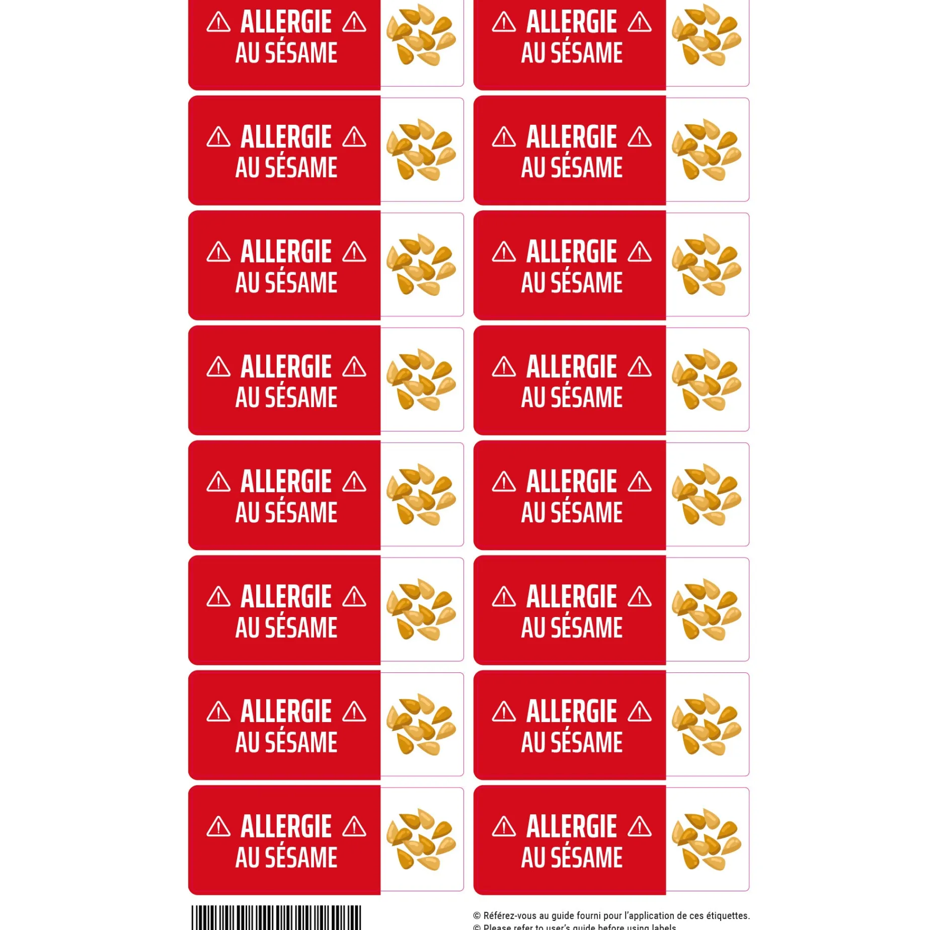 The Allergy Label Set contains 16 labels of the same size (2.6″ x 1″ / 6.6 x 2.6 cm) to identify various objects, from a container to a large backpack. Adhesive labels do not require ironing: simply peel off the stickers, apply them to the items to be identified, and wait 24 hours before exposing them to water, heat, or cold.