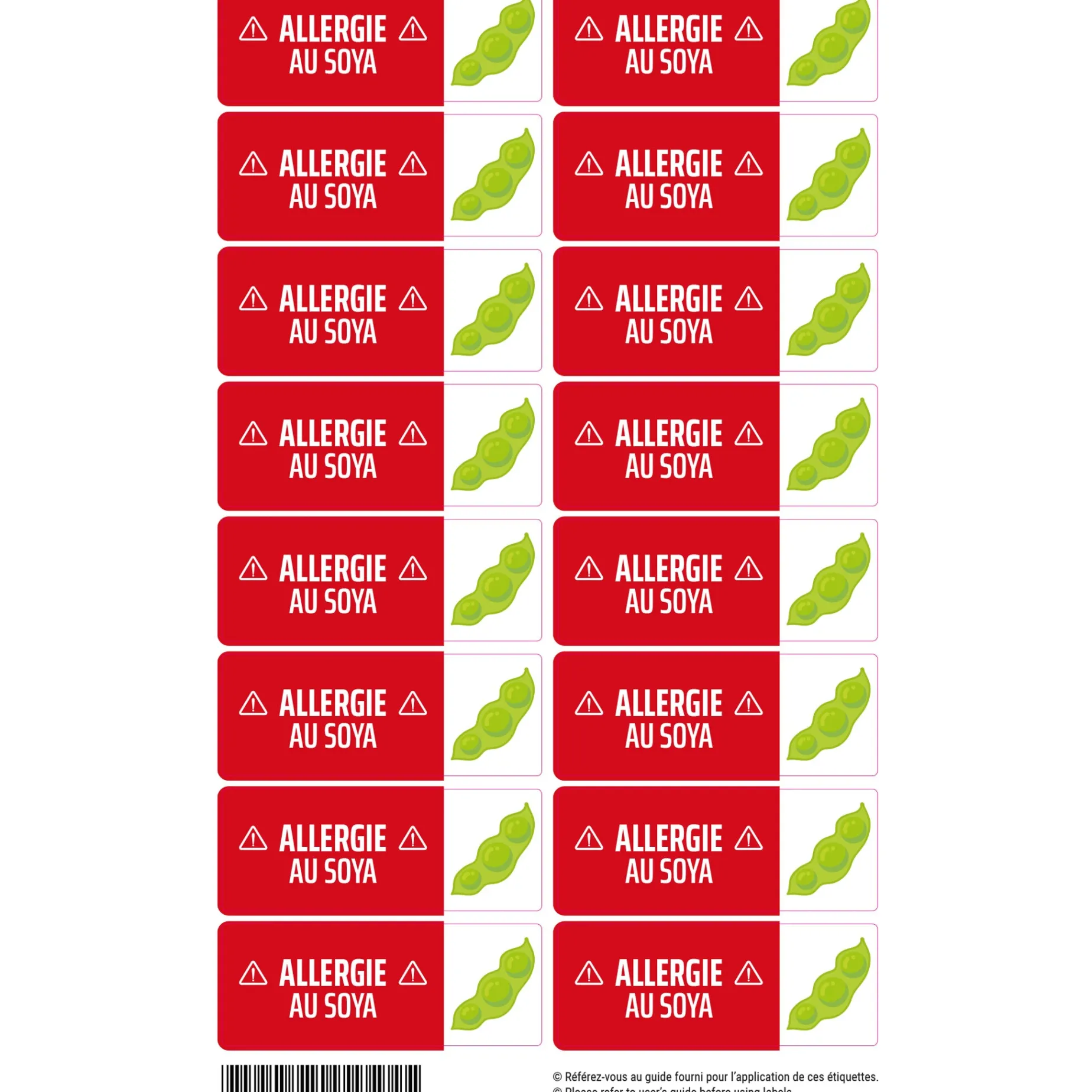 The Allergy Label Set contains 16 labels of the same size (2.6″ x 1″ / 6.6 x 2.6 cm) to identify various objects, from a container to a large backpack. Adhesive labels do not require ironing: simply peel off the stickers, apply them to the items to be identified, and wait 24 hours before exposing them to water, heat, or cold.