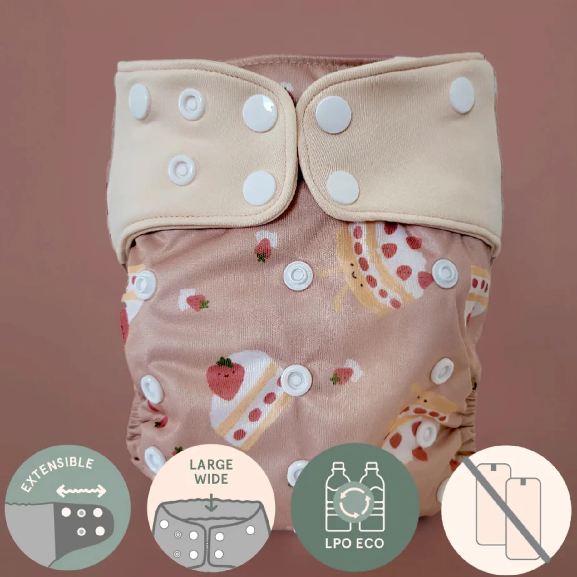Our pocket diaper is made with more than two recycled plastic bottles, because every little helps. And of course, it meets the highest standards of quality and safety.With our recognized certifications, you can have peace of mind: softness, performance, and eco-responsibility are guaranteed.Wash the diapers twice before first use. Do not mix them with other clothes for the first few washes.Important – Read before washing: For our new washable diaper models with wings made from a brand-new fabric, we recommend washing them separately from other items for the first two washes. This fabric may bleed slightly, although this is not always the case. This precaution helps protect your other diapers and clothes. Thank you for your understanding!