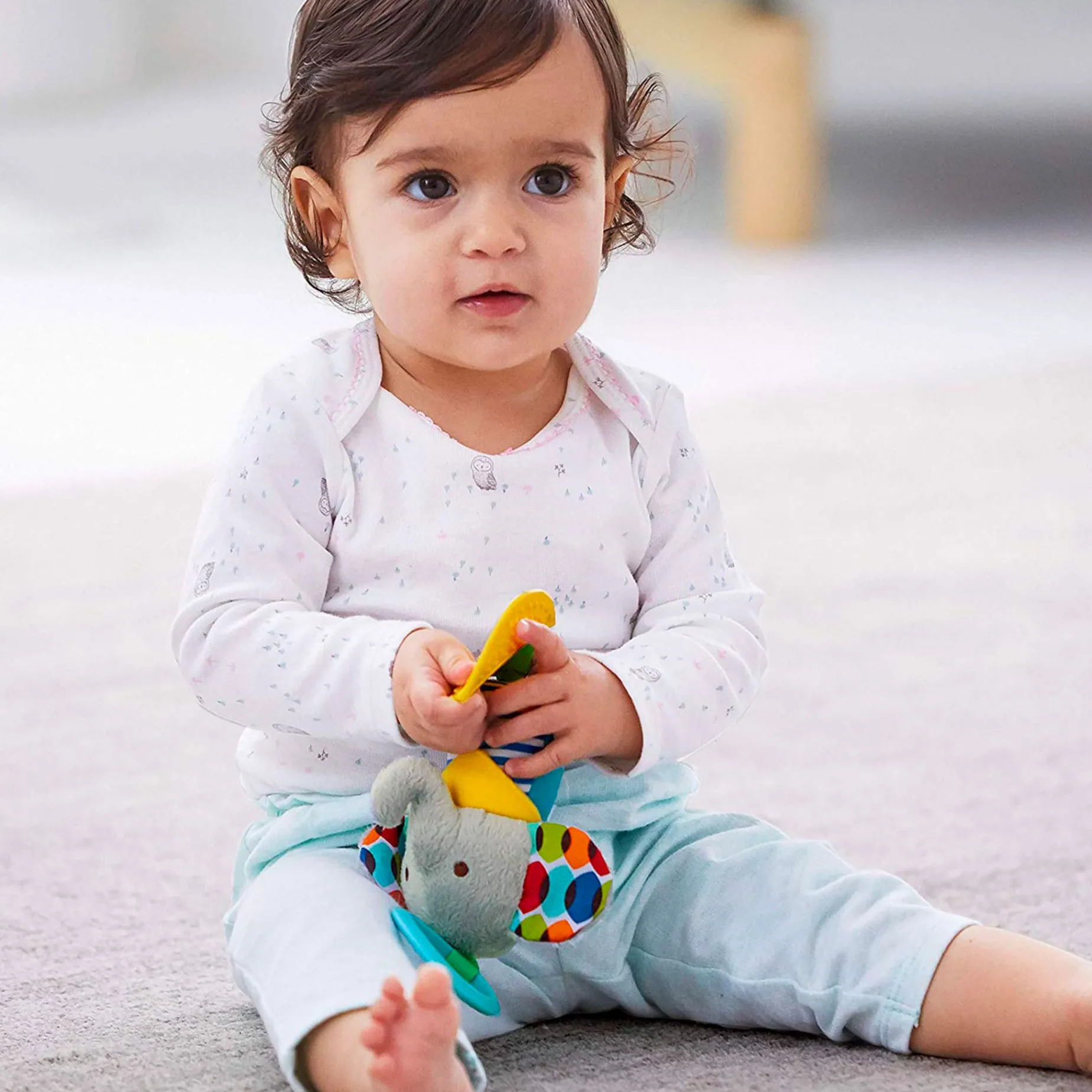 -Includes textured hanging teether
