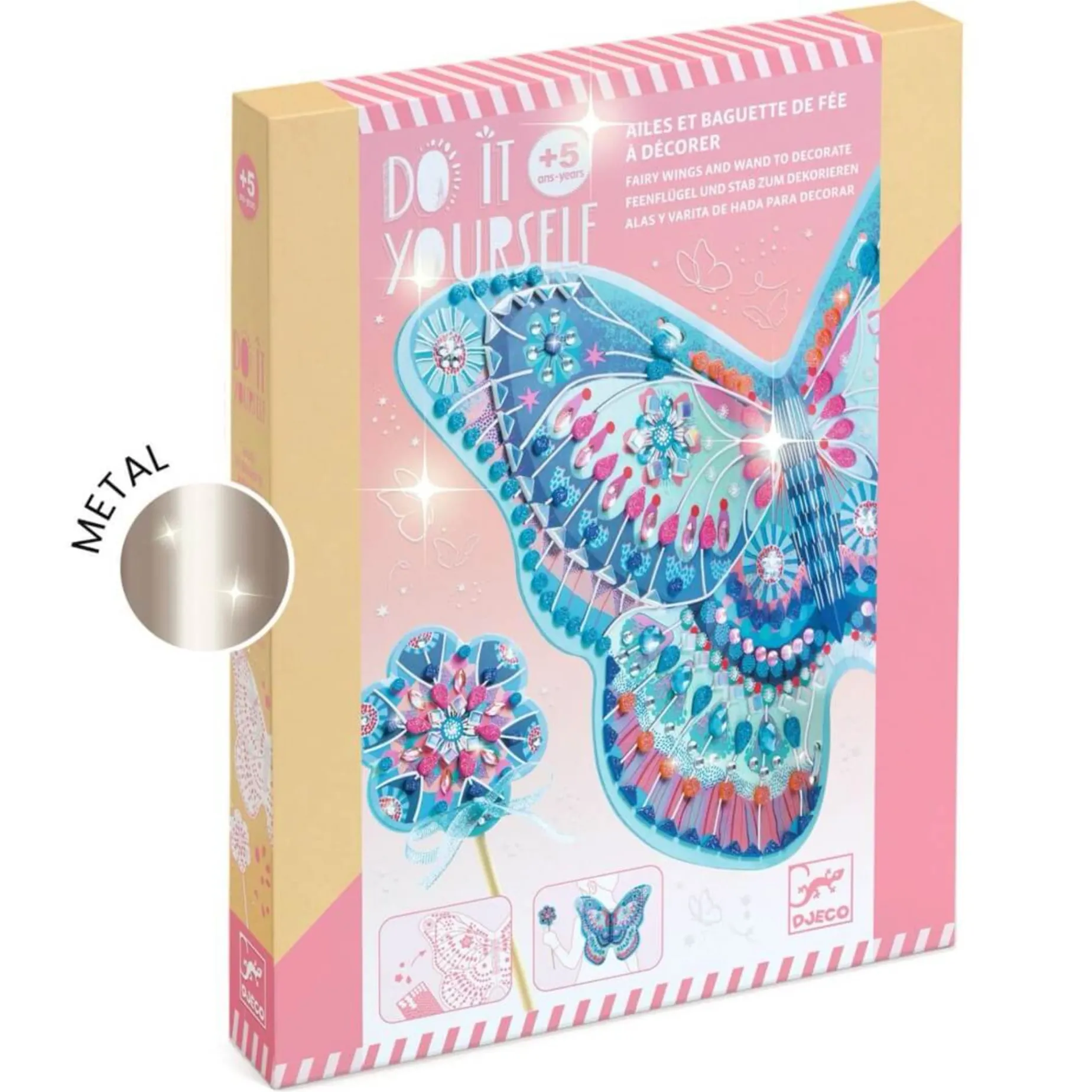 A creative kit consisting of a wand and a pair of fairy wings to decorate.