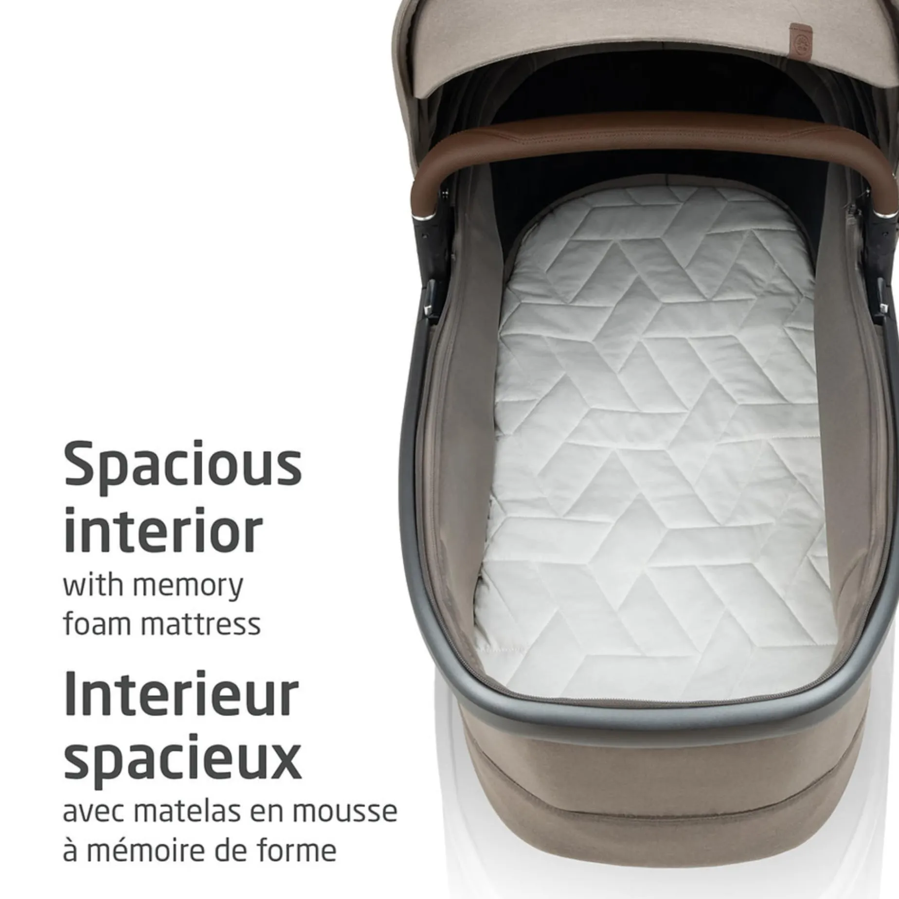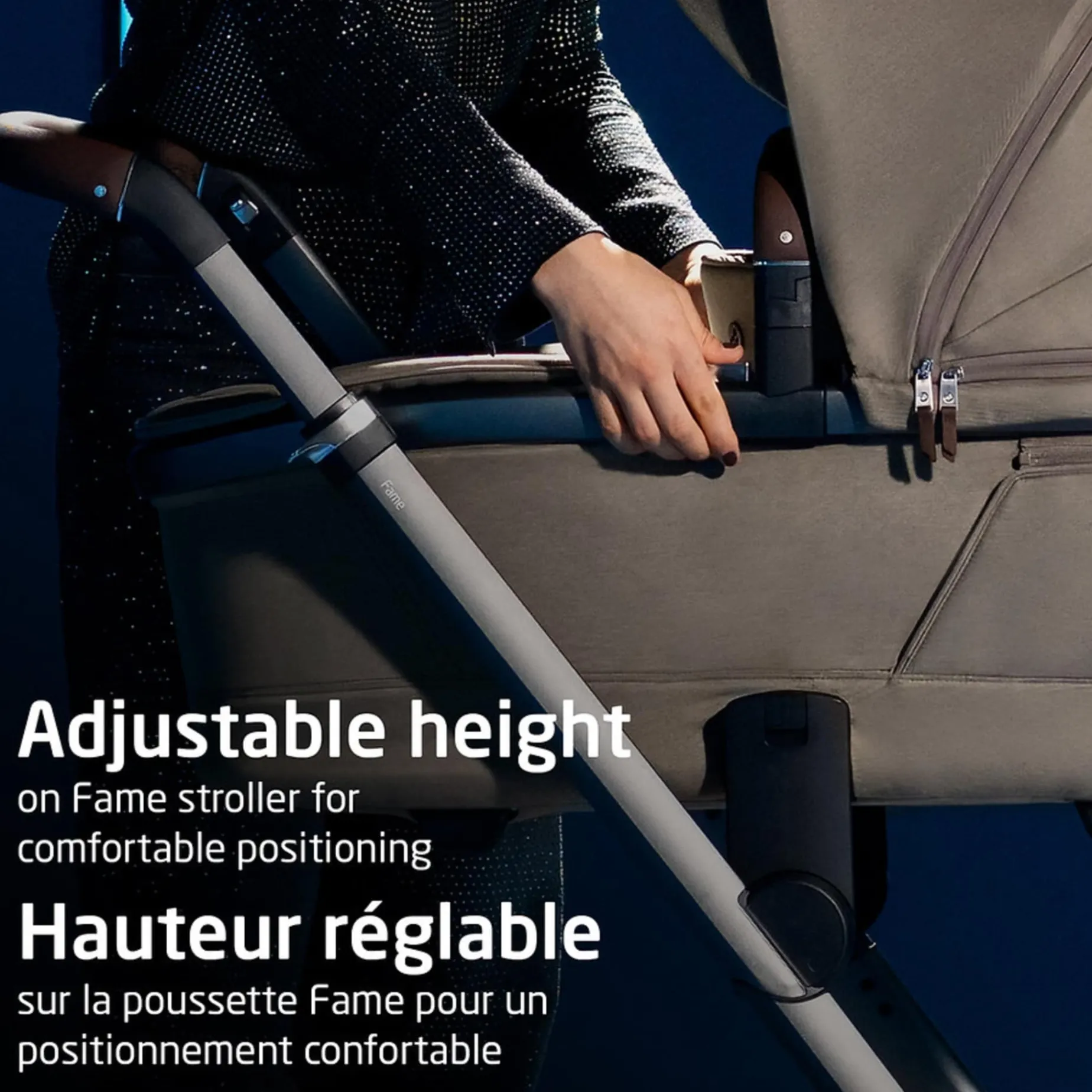 Maxi-Cosi’s Fame carrycot, compatible with the Fame stroller, offers luxurious comfort for both baby and parent. With its spacious design, reversible breathable memory foam mattress, and ventilation window, your newborn will always enjoy the perfect temperature and optimal sleep comfort. Featuring an integrated SoothingSlope, simply pull a strap to gently raise your baby into an inclined position to reduce reflux. For parents of all heights, the Close2Me adjustable system allows the carrycot to move up or down, preventing back strain when placing baby in or out. Once detached from the frame, the carrycot folds quickly thanks to its compact folding mechanism. Memory buttons also allow for quick and easy release of the carrycot, seat, or car seat—because every second counts for parents.