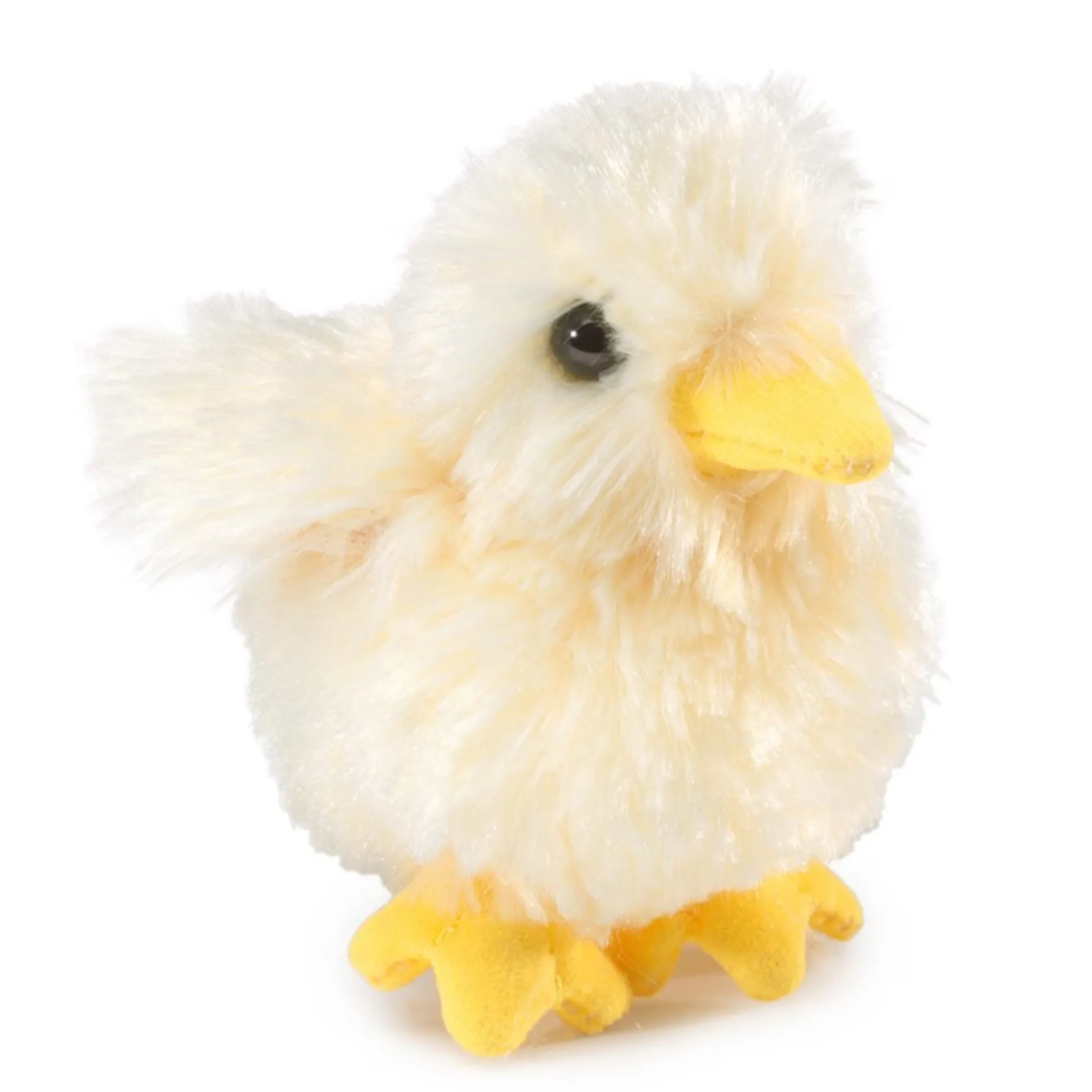 Folkmanis’ MINI CHICK finger puppet is 4-inches tall and oh so sweet. Perfectly sized for little hands, this precious chick has super-soft plush fabric and delicate facial features.