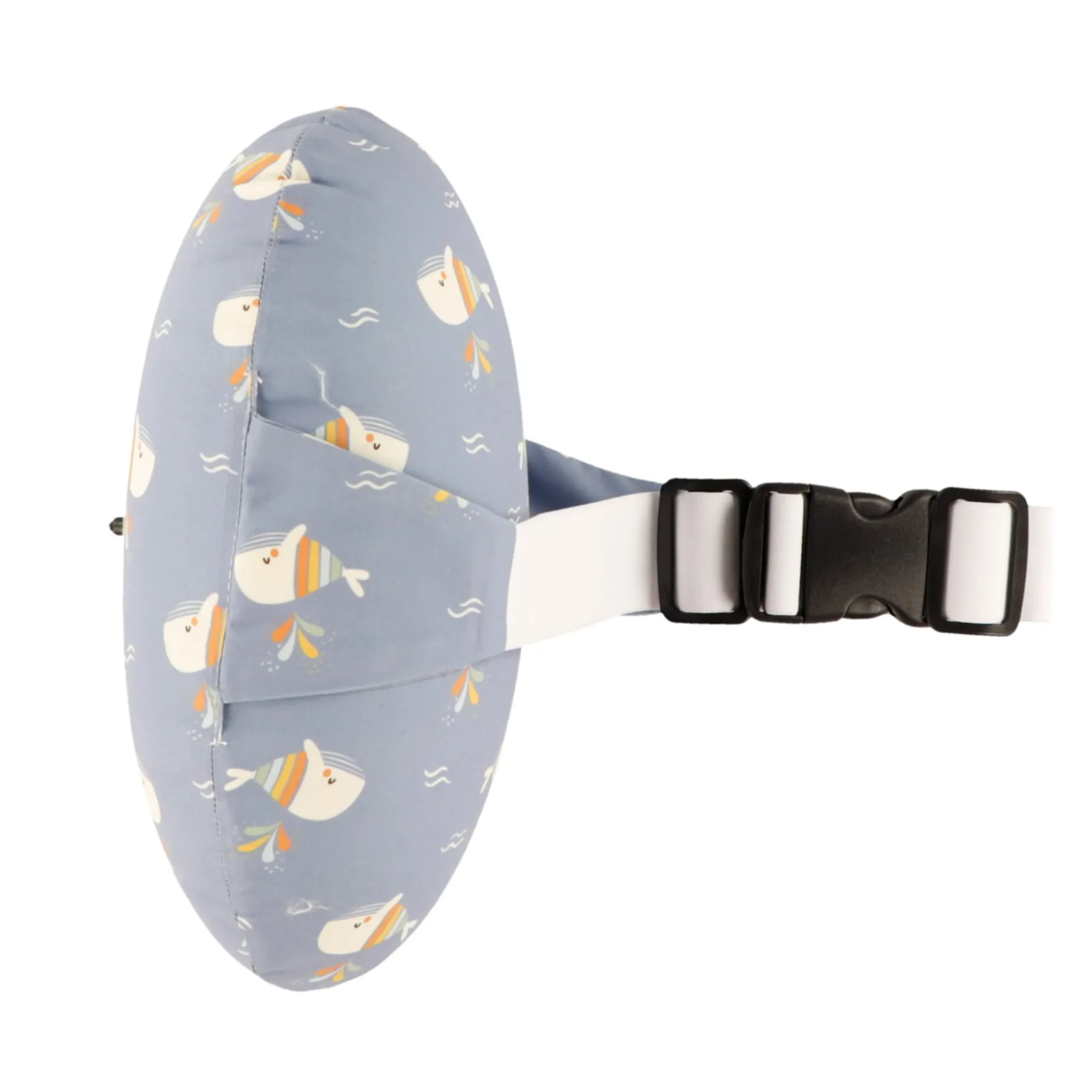 The dorsal ball is a practical tool for learning to swim. As the child progresses and gains confidence, the balloon can be deflated to decrease buoyancy. A plastic clip allows for easy adjustment.