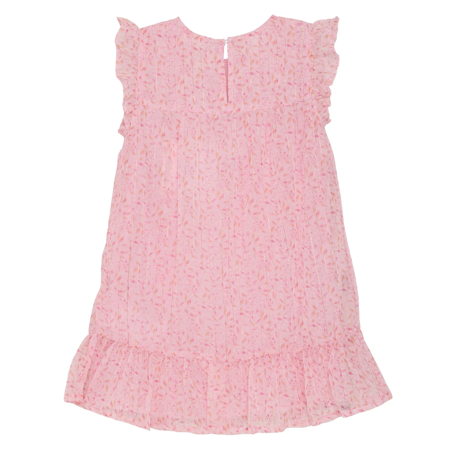 A glamorous dress made from light chiffon with subtle lurex details that add a touch of elegance. It features an adjustable fit at the waist, providing a flattering silhouette. The airy fabric makes the dress ideal for festive occasions, where it can be styled with elegant shoes or sandals. Perfect for any girl who wants to feel extra special for special events.