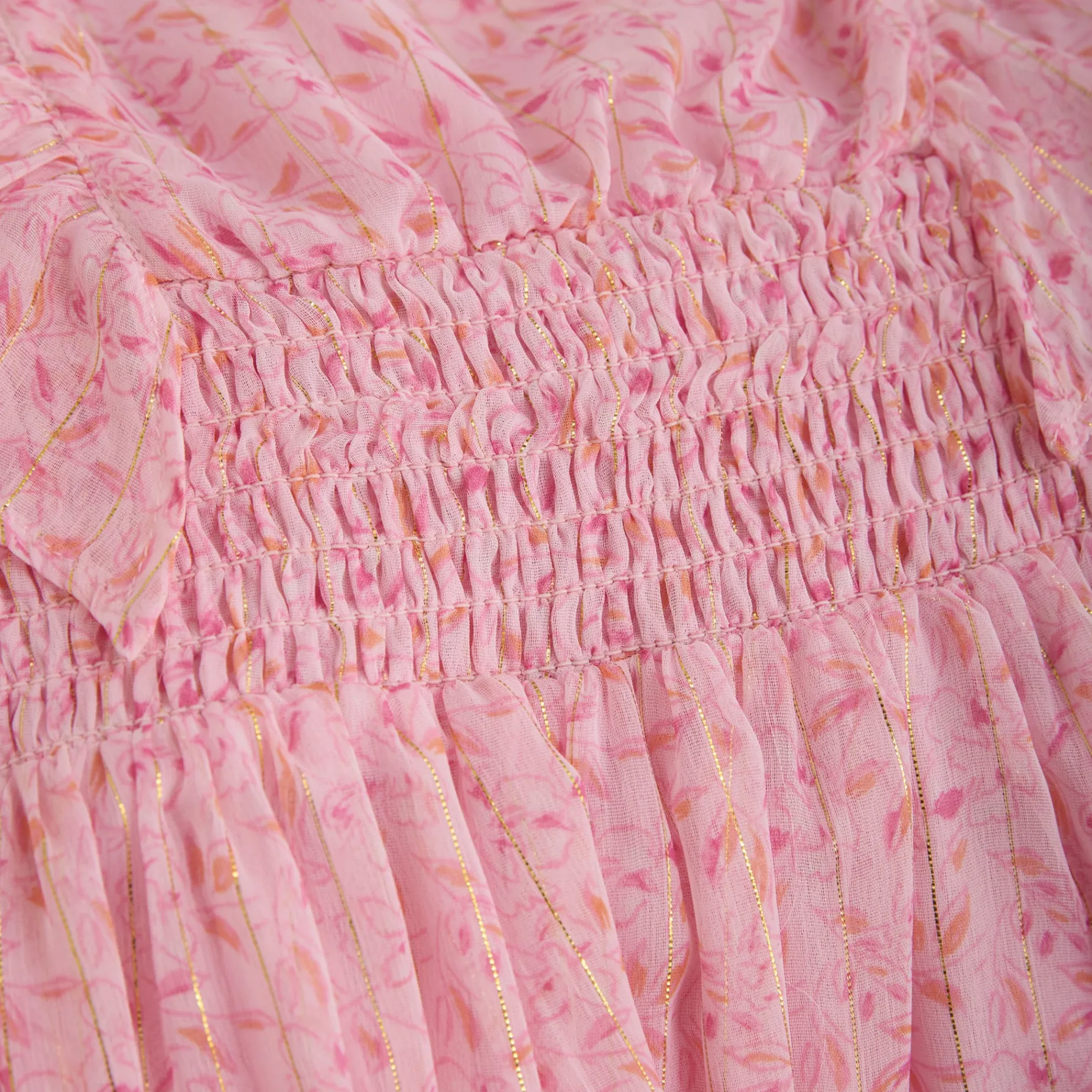 Dress with elegant lurex stripes, giving a festive and shimmering appearance. Made from chiffon, this dress has a light and airy feel, making it perfect for both festive occasions and summer days. The elastic waistband ensures a great fit, while the lightweight fabric creates a beautiful silhouette. Creamie.