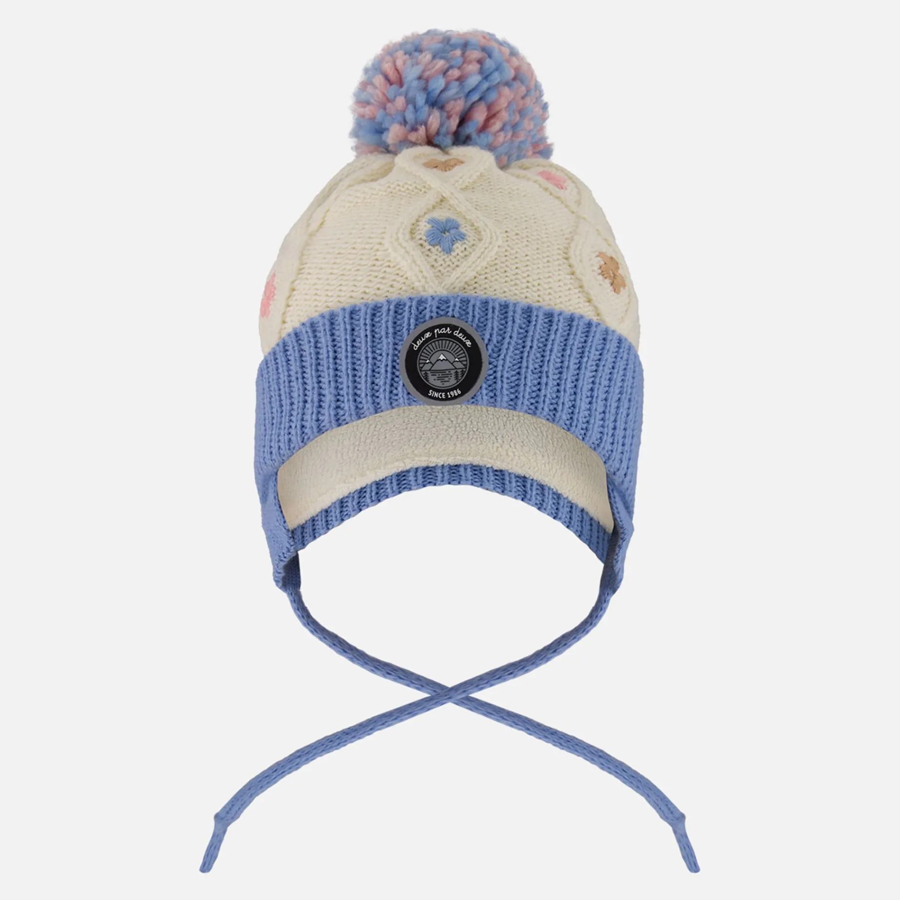 A polar fleece lining makes this earflap hat perfect for cold temperatures that require protective layers. With a soft stretch fit and a multicolor pompom on top, this beanie features earflaps for extra coverage, side strings, and a rib knit cuff with a signature logo patch at the hem.