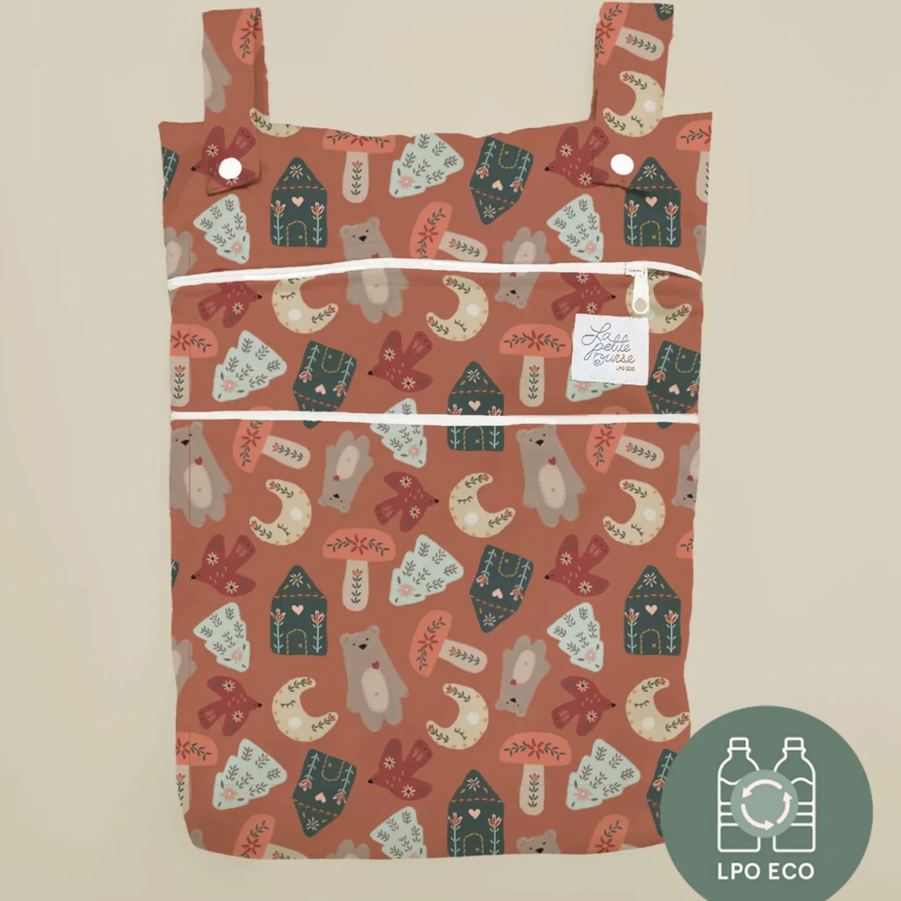 This bag has two openings that allow you to store 10 diapers. It’s very useful for outings: you can store your wet swimsuits, take your diapers to daycare, and dispose of your soiled diapers. A must-have to add to your cloth diaper order!