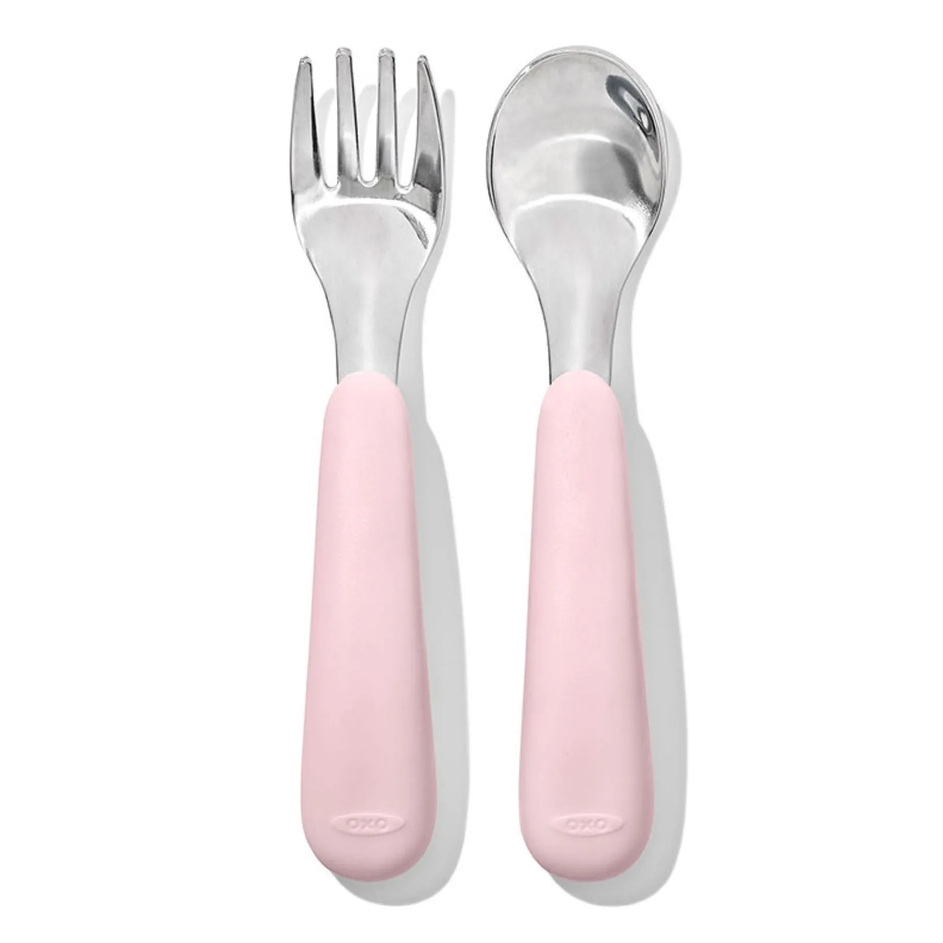The OXO Tot Fork & Spoon Set is perfect for littles ones learning to self-feed like big kids. The stainless steel Fork tines are rounded but can still spear food, and the matching Spoon is designed for optimal scooping. The curved, non-slip handles are easy for little hands to hold and feature a flat spot to keep the utensils from rolling off tables or high chair trays. Dishwasher safe.