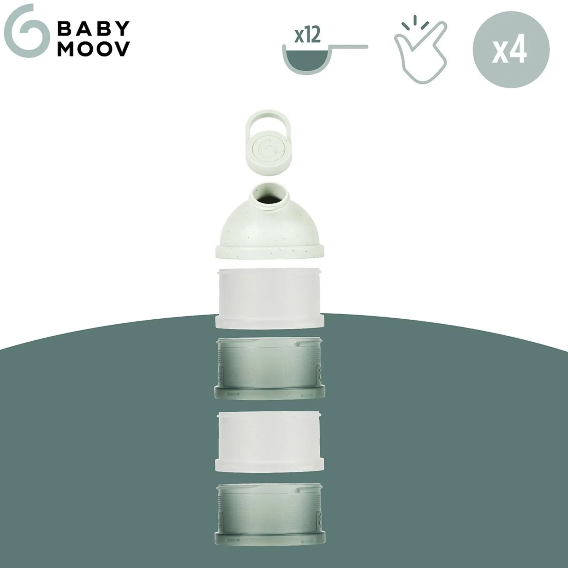 -4 compartments for easily transporting powdered milk doses for a day’s meals
