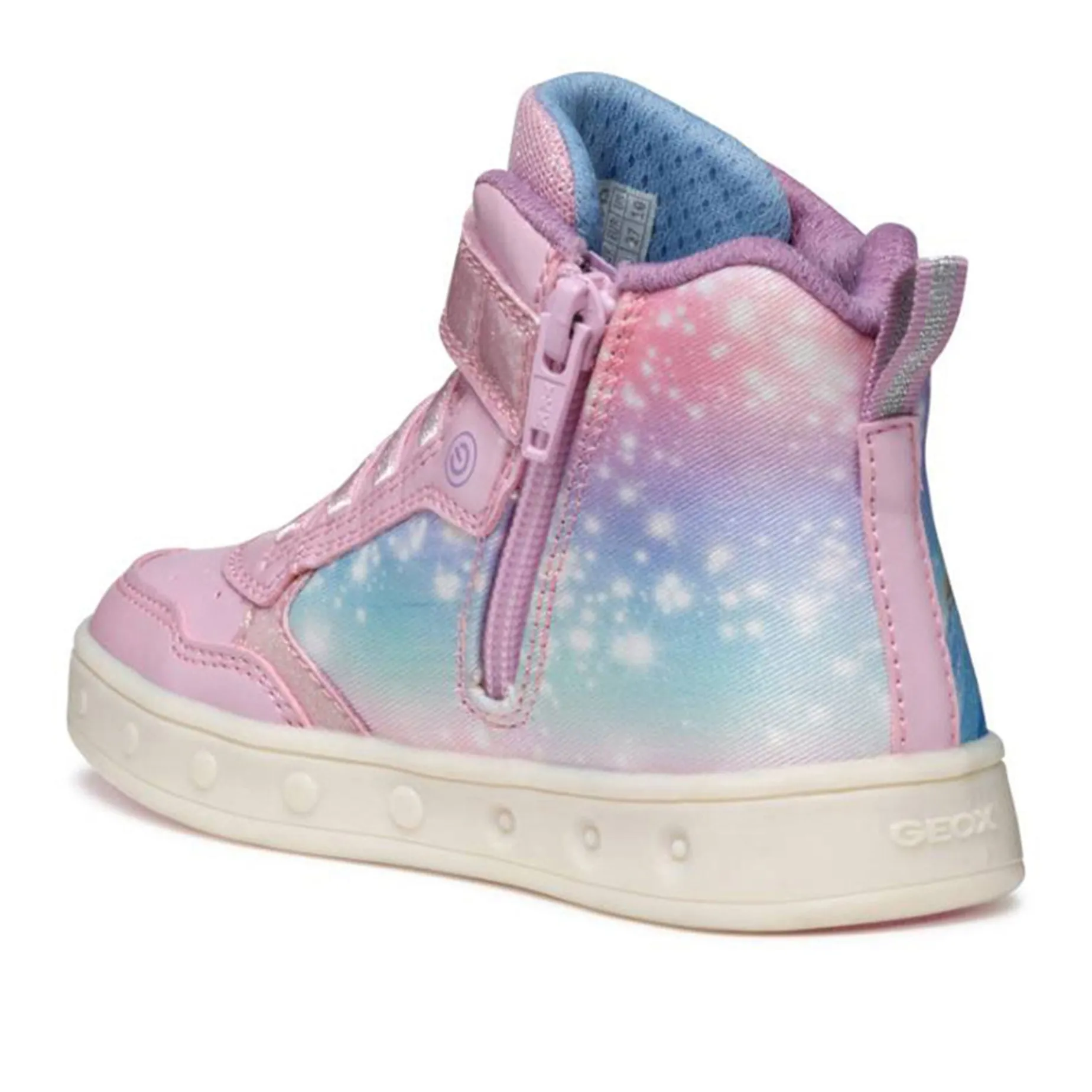 Sneaker created under the partnership between Geox and Disney with a design that captures the magic of the world of Frozen through a lively dynamic aesthetic. It features a pink upper made from a printed fabric and pearlescent-leather-effect material enhanced with led devices on the outsole for a mixture of fun and originality. Skylin will be a perfect choice for little fans of Elsa and Anna, bringing style and comfort to their everyday adventures.