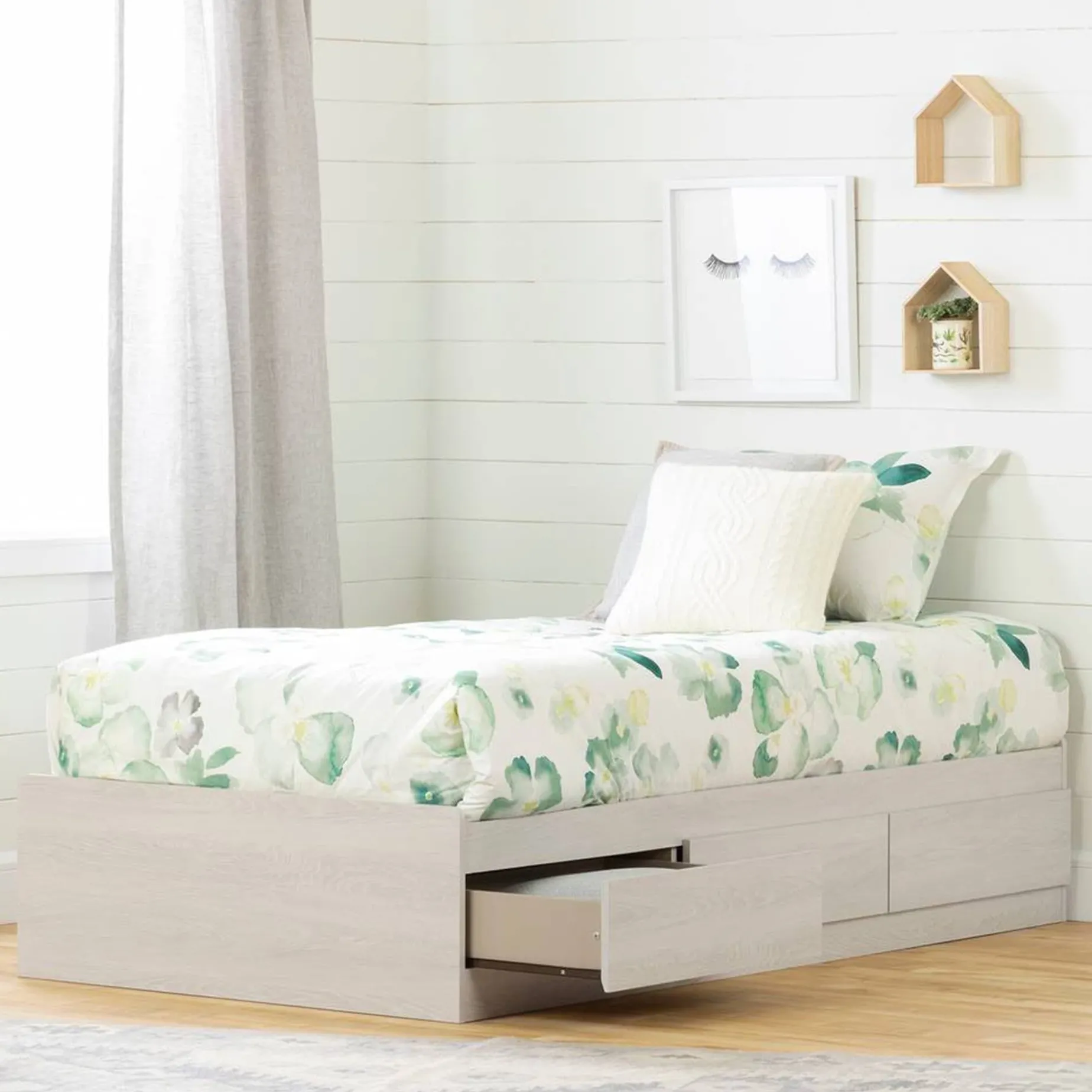 Fynn Twin Mates Bed with 3 Drawers – Winter Oak