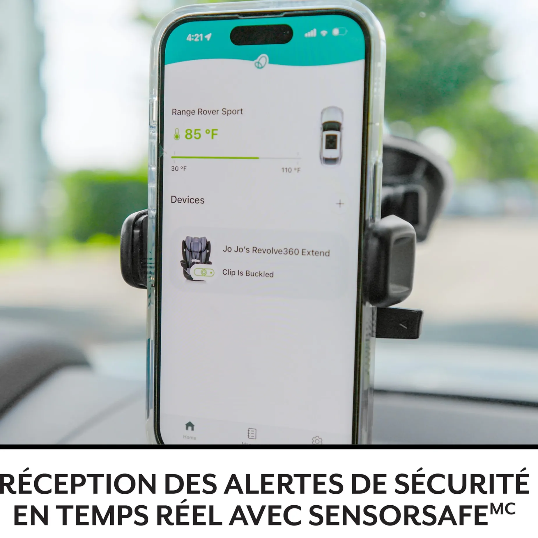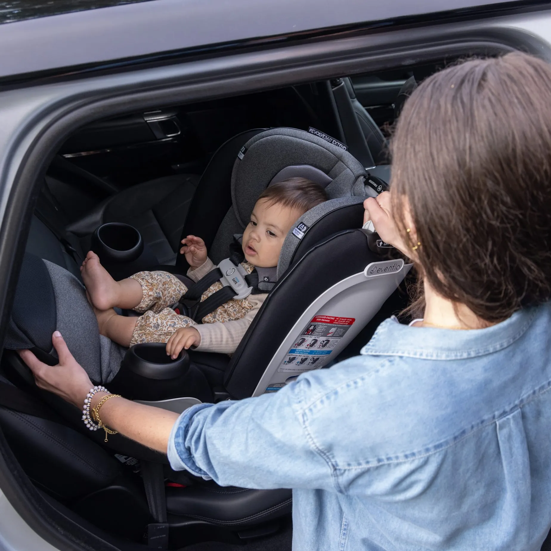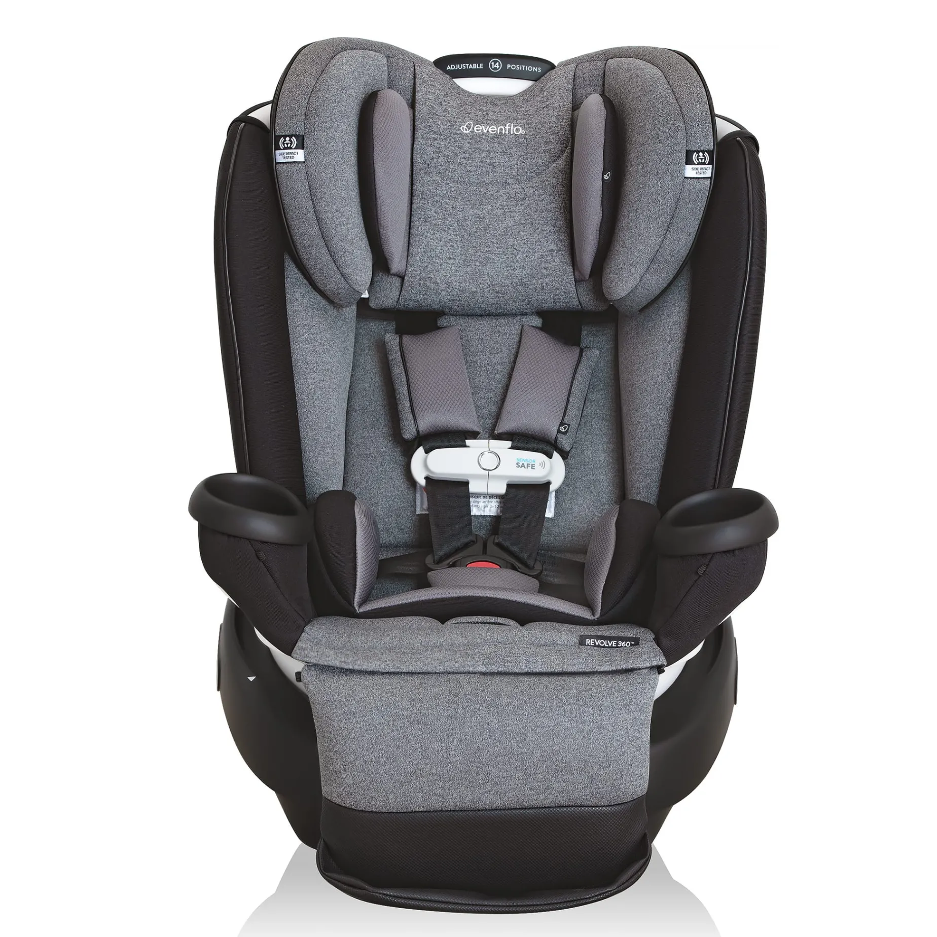 The revolution just got extended! The Evenflo® Gold Revolve360™ Extend All-in-One Rotational Car Seat with SensorSafe™ offers the extended security of rear-facing all the way up to 50 lb. Child safety experts say the longer your child remains rear-facing, the better, and the Revolve360 Extend is here to help with peace of mind all the way around. A spin-off of the Revolve360, America’s bestselling rotating car seat, the Revolve360 Extend offers one-hand, 360° rotation that makes it easy to get your child in and out of the car. But a 360° rotating car seat is just the beginning. You’re looking for a safe car seat — and the smart car seat choice is a connected car seat. The Evenflo Gold Revolve360 Extend will help put your mind at ease when it comes to child car seat safety, featuring SensorSafe to connect you to your little one from the backseat. While your eyes are focused on the road, integrated SensorSafe technology alerts you in real-time to four potentially unsafe conditions from your child’s car seat via your phone: unexpected chest clip unbuckling, temperature too hot or too cold, child unattended in the car, and child seated too long. Install the seat just once for rear-facing and forward-facing modes of use — no need to remove the seat in order to make the switch. Sure360™ Safety Installation System with LockStrong™ and Tether360™, plus a handy bead-level indicator for leveling in seconds, make your one-time installation safe, secure and simple. The best swivel car seat is one that lasts! The Revolve360 Extend is the only car seat you’ll ever need, growing with your child with 3 modes that adapt to every stage: rear-facing (4 to 50 lb), forward-facing (22 to 65 lb) and booster (40 to 120 lb). This innovative car seat also comes with a zip-on, ergonomic leg rest to add comfort for growing legs. On-the-go recline means you can adjust the car seat to the perfect angle without having to uninstall or bother your child. This is the crème de la crème of swivel car seats. Offering good looks and ease at every turn, the Evenflo Gold Revolve360 Extend features our most sophisticated fabrics and elevated touches to finish off your bold moves in style. Join the revolution! At Evenflo, we go above and beyond government standards to create car seats that are safe. The Evenflo Gold Revolve360 Extend meets or exceeds all applicable federal safety standards. It is structural integrity tested at energy levels approximately 2x the federal crash test standard, and it is side-impact tested, rollover tested and temperature tested.