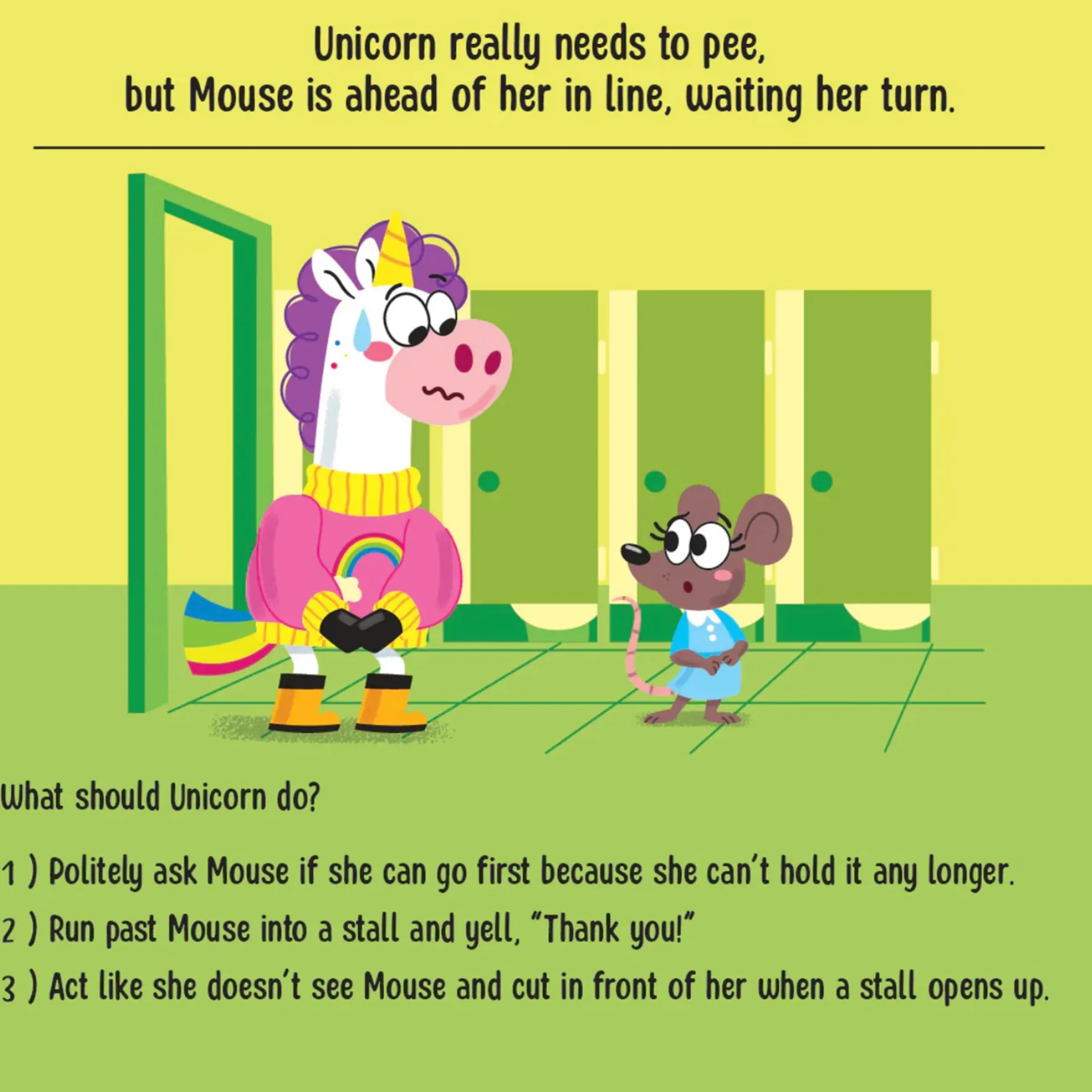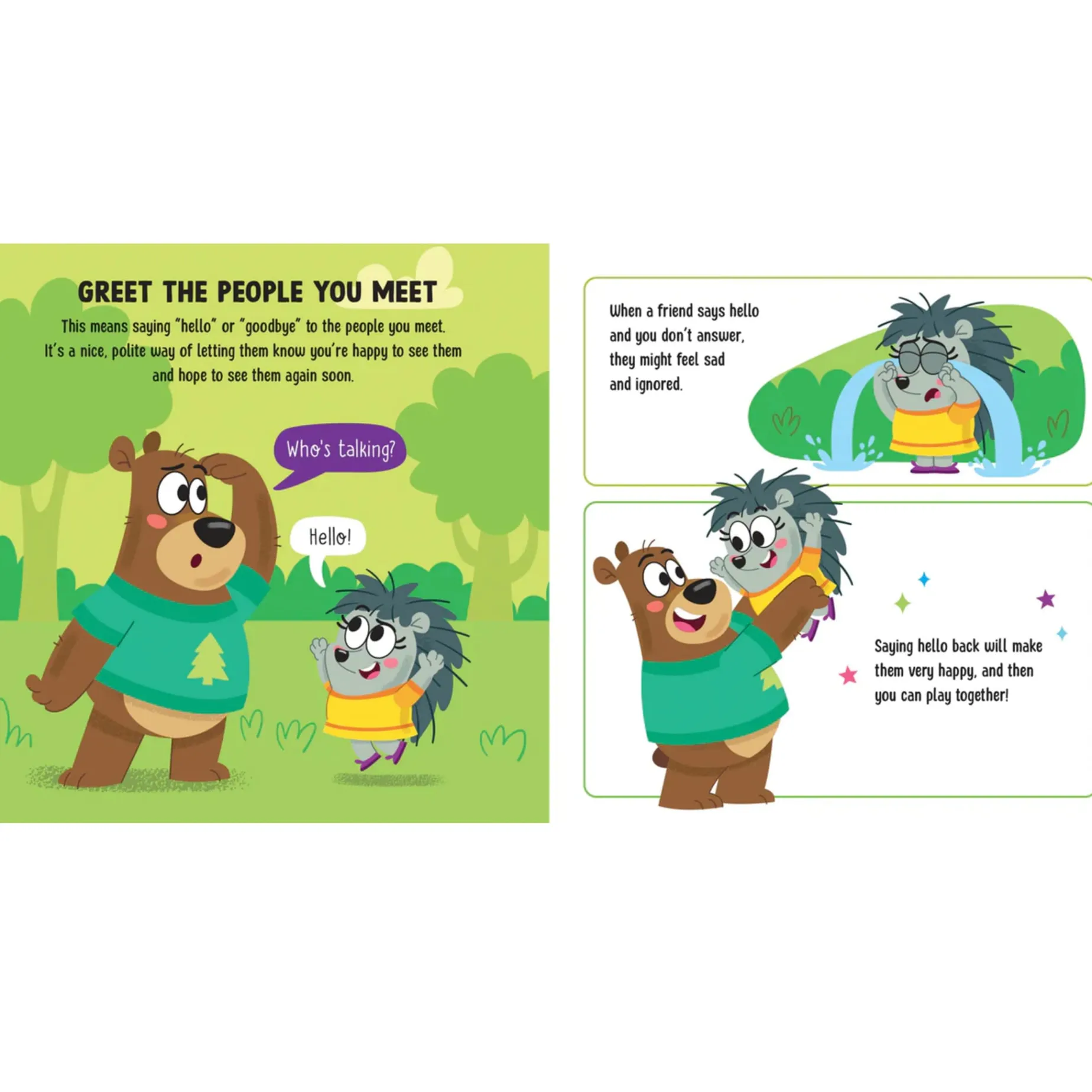From a very young age, children begin to understand the importance of being polite and behaving nicely if they want to get along with others. This book, brimming with examples and everyday situations and simple explanations, is a fun way to teach your child good manners. It includes 10 two-sided cards to help your child learn and recognize appropriate and inappropriate behaviors in the scenarios shown.