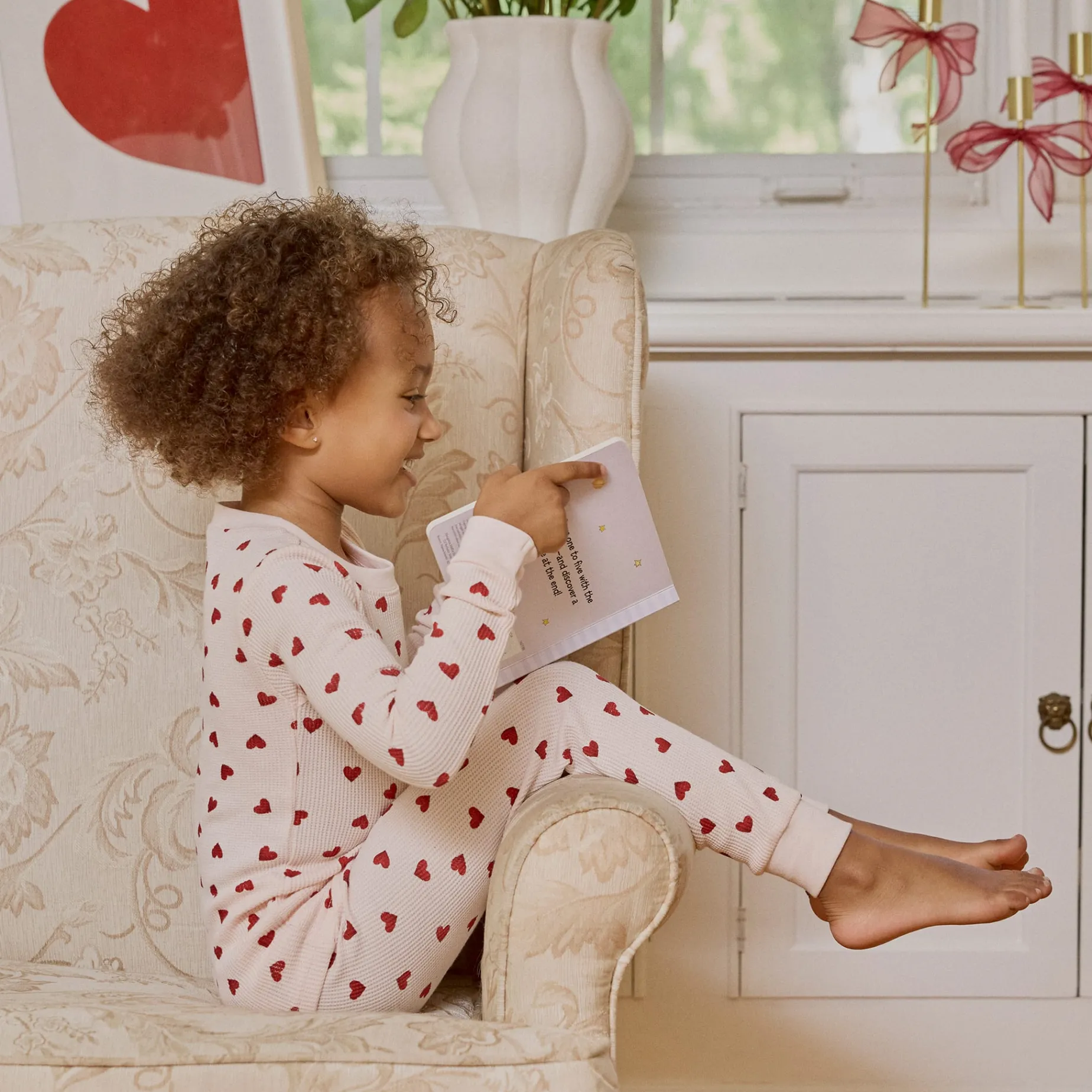 These thermal blend PJs offer warmth and comfort for chilly nights and feature a sweet, scattered Hearts print to match pieces available for mom and younger siblings. The long-sleeved, long pants set is finished with ribbed cuffs and ankles so it’s perfect for snoozing or playing at home. With a rounded neckline and an elasticated waistband, the set makes getting ready for a loved-up day with the family is quick and easy.Â