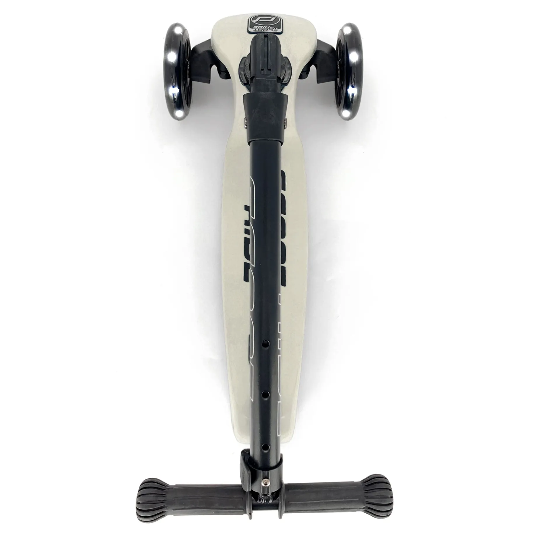 The Highwaykick 3 features 3 LED wheels and a three-height adjustable handlebar that folds easily for convenient transport (no tools required).
