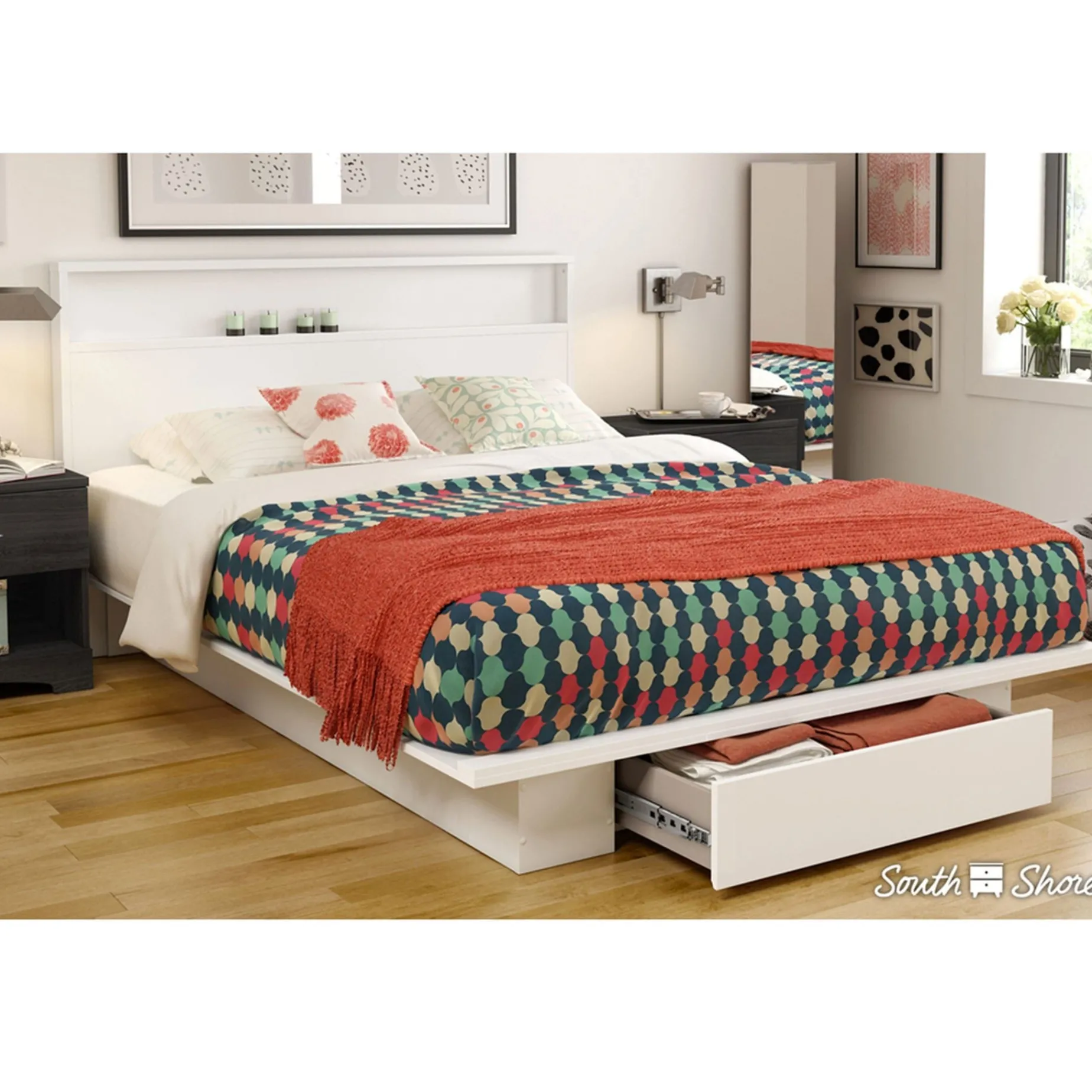 Holland DoubleQueen Platform Bed with drawer – Pure White