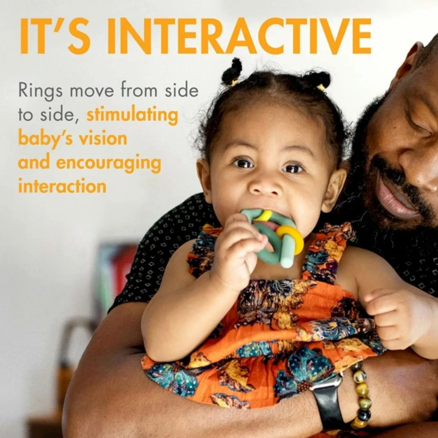 Interactive Toy: Rings move from side to side, stimulating baby’s vision and encouraging interaction