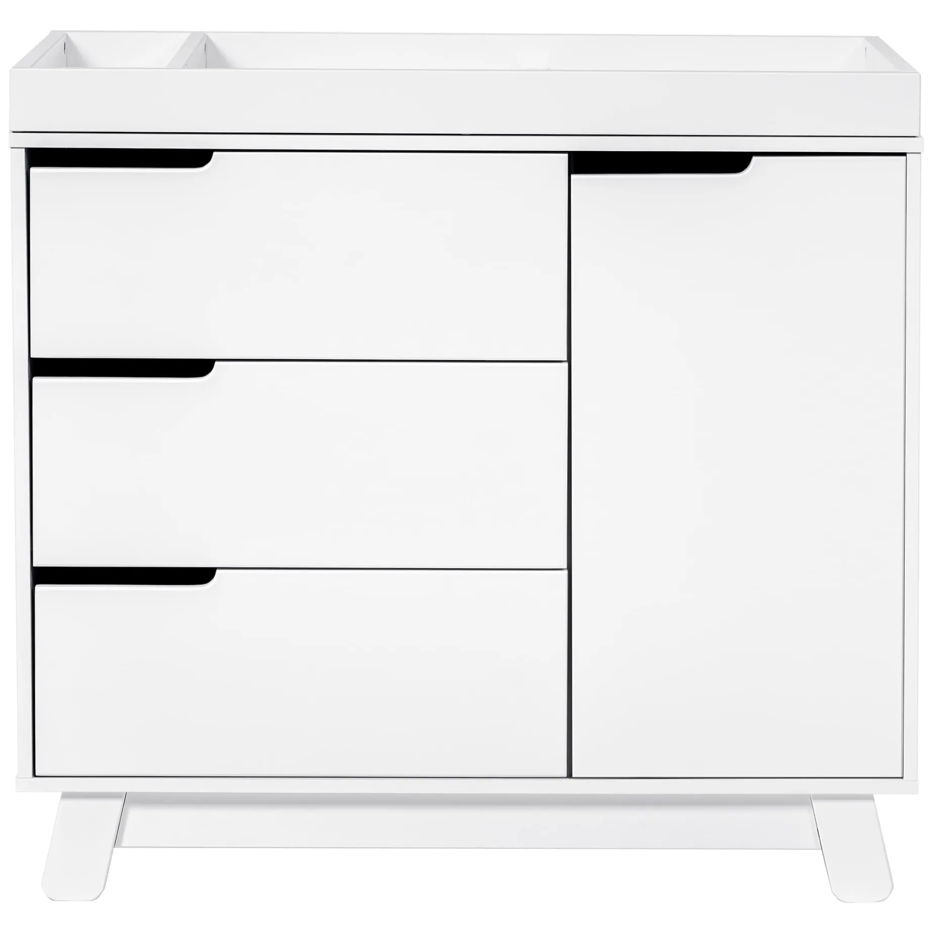 The Hudson 3-drawer Changer Dresser is a modern space-saving convenience! Combining an included changing table, 3-drawer dresser, and storage cabinet all in one versatile package. Truly built for baby, the storage cabinet includes an adjustable shelf which is perfect for keeping diapers and wipes handy. Additional details include smooth-glide drawers, hidden hardware, and an included anti-tip kit. Complement the best-selling Hudson 3-in-1 Convertible Crib for an essential modern nursery.