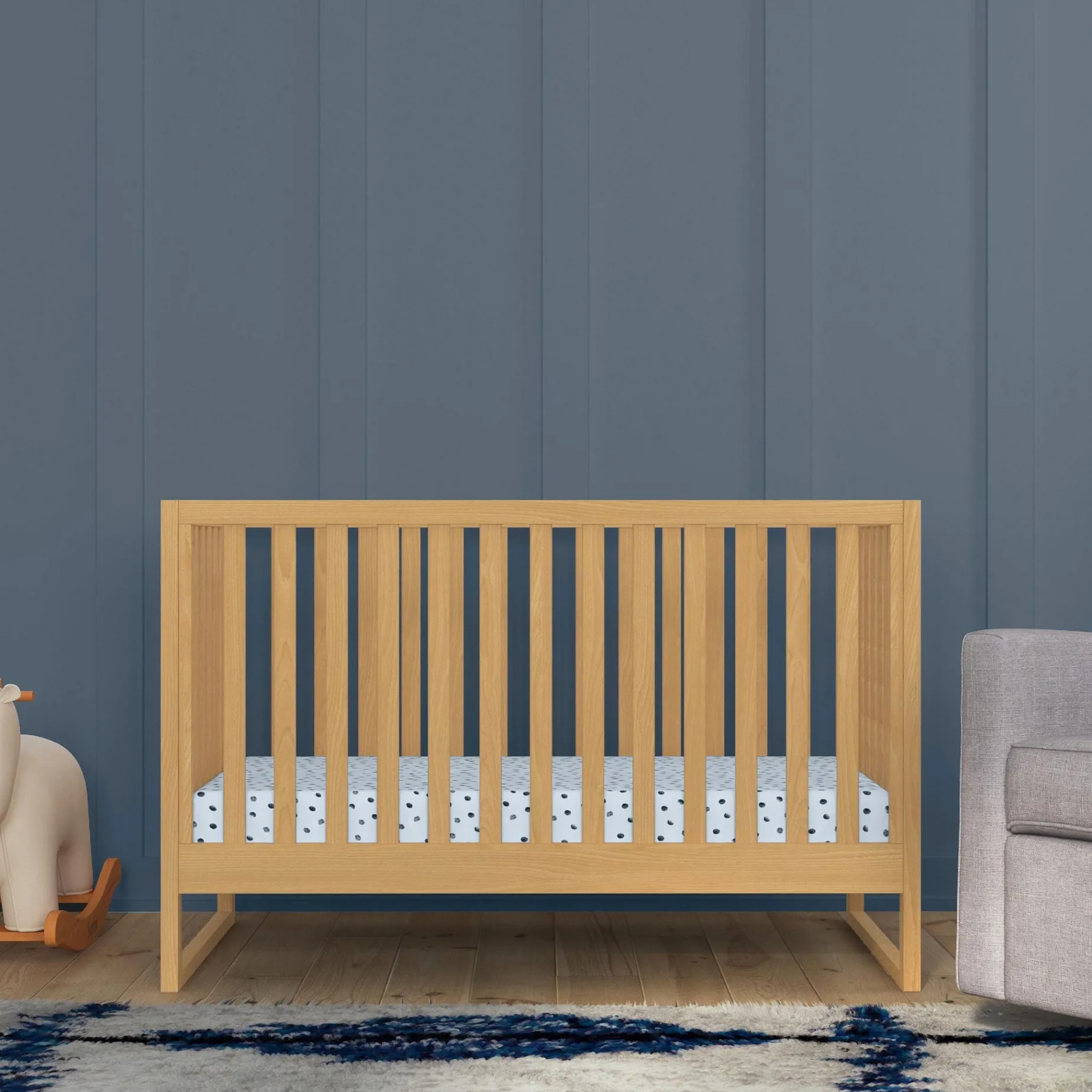 The simple yet striking design of the Hunter 3-in-1 Convertible Crib adds style to both modern and classic nurseries. Built to seamlessly transition from newborn to toddler, the crib has four different mattress heights and easily converts to a toddler bed and daybed.