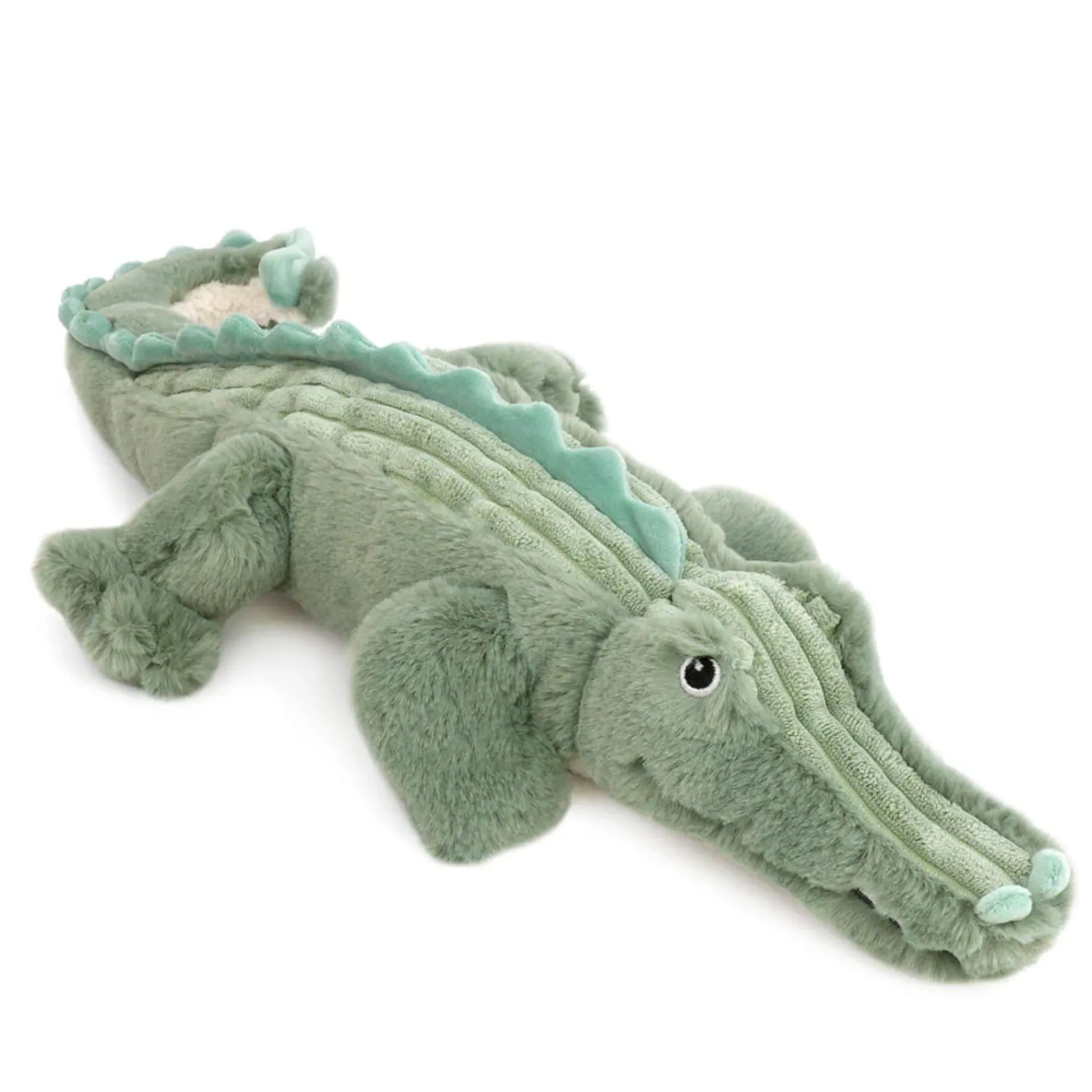Say hello to Jagger Alligator, the snuggliest gator around! With his soft, sage-green skin and larger-than-life attitude, he’s the perfect cuddle buddy for any little reptile lover. Just like the real thing (but without the bite!), he features realistic markings and ridges that run from his head to the tip of his tail. Every wrinkle and ridge adds to the allure and interest of this reptilian friend, making him all the more charming. Whether you live near a swamp or not, you can be swamp royalty anytime with this lovable gator by your side.