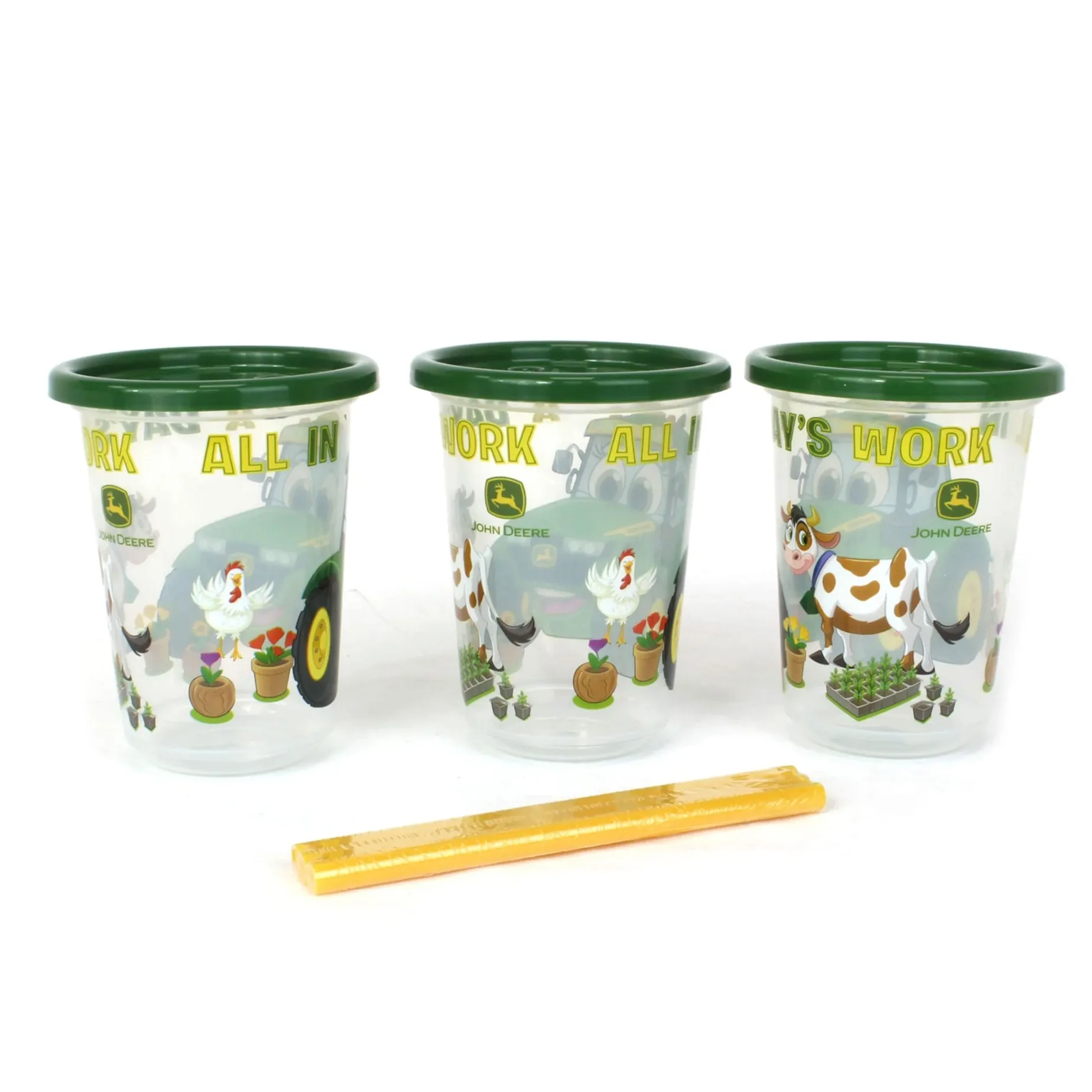 – Pack comes with 3 John Deere 10oz spill proof straw cups!