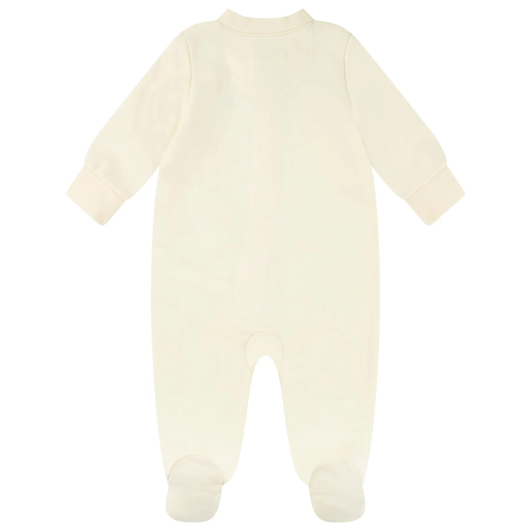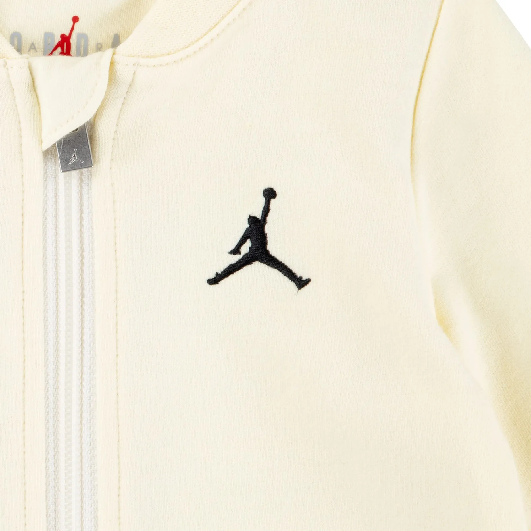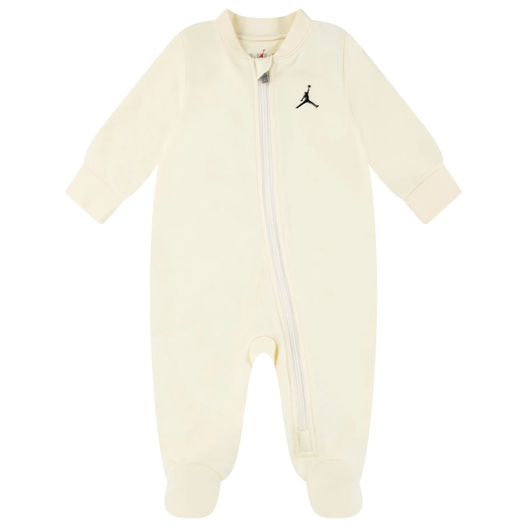 Features: Super soft baby French terry fabric, Long sleeves with foldover mittens, Covered feet, Full-zip closure, Zipper guard to protect the chin, Jumpman logo embroidery