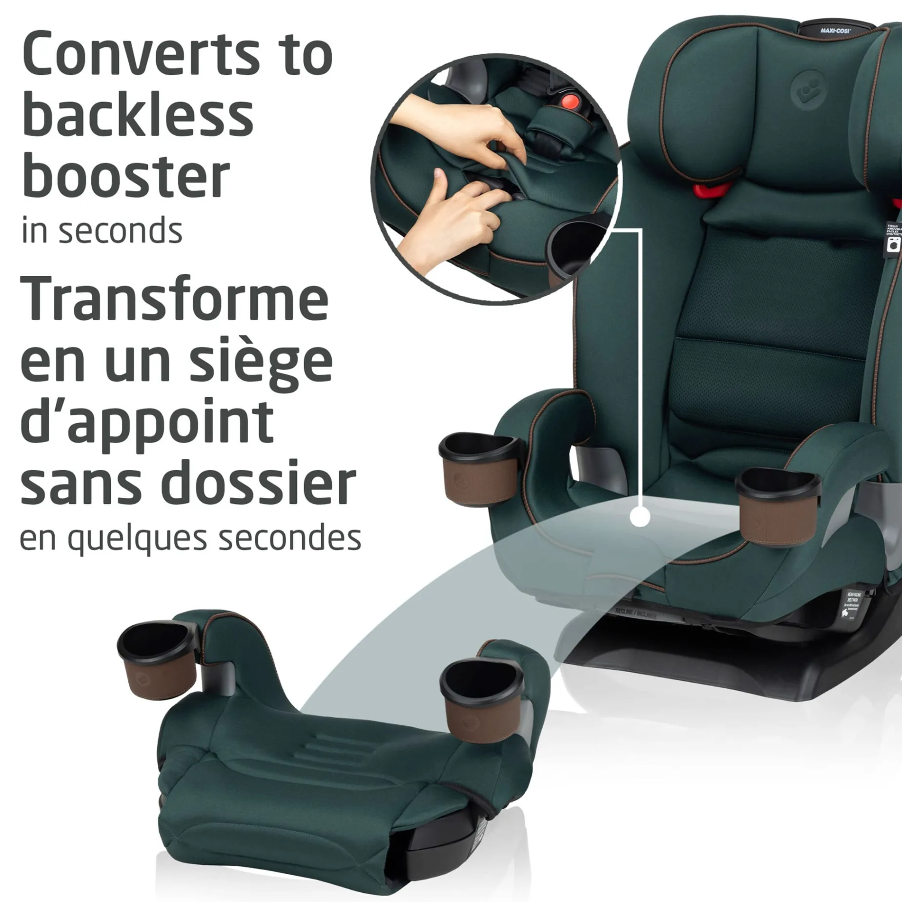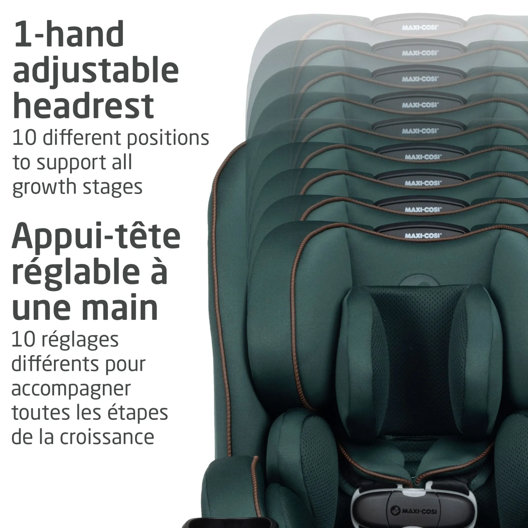 The Maxi Cosi Kani 4-in-1 All-in-One Convertible Car Seat is made to fit your child for a decade, one car seat with 4 modes of use from birth to 10 years old (5-100 lbs). Kani’s slim design allows a 3 across the back seat fit in most vehicles without sacrificing safety or comfort. The 10-position adjustable headrest and 5-position adjustable base allows for easy transitions to ensure a secure fit for your growing child. ClipQuickâ„¢ auto-magnetic chest clip gets your child buckled in securely and on your way quickly. When it’s time to switch to a backless booster, the Kani converts in seconds with an intuitive one-hand release design. Premium detailing with vegan leather accents and featuring EcoCare soft, breathable, machine washable and dryer safe 100% recycled fabrics made from plastic bottles.