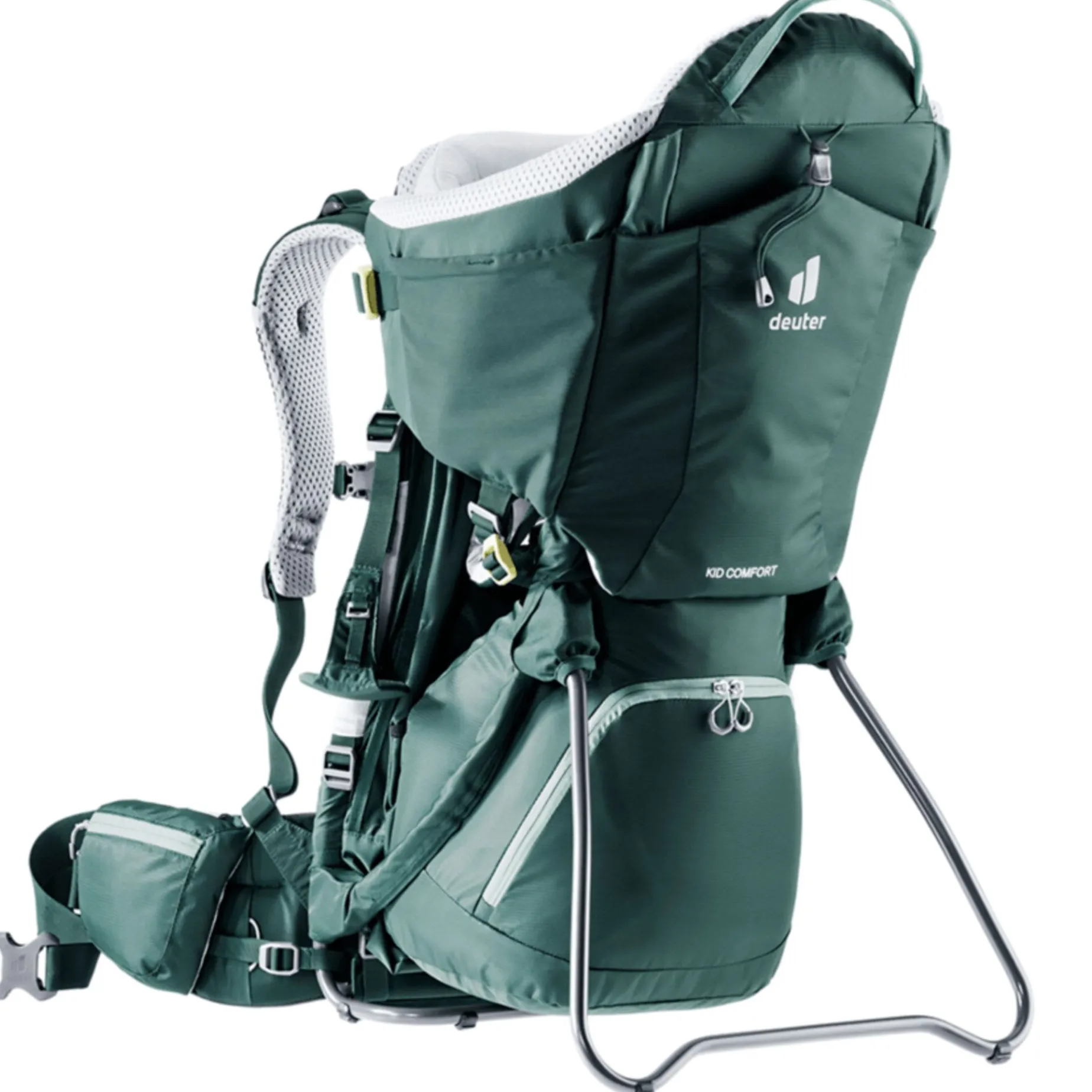 The ingenious, new Aircomfort Sensic Vario mesh backrest system makes mountain adventures all the more pleasant for families: The load is transferred perfectly, the child carrier fits snuggly while the back is fully ventilated. The child is afforded great comfort: The large, soft pillow gently braces the tired child‘s head even in the corners and supports a relaxing nap. The side access and the easy-to-access belt system of the child frame ensure safety – guaranteed by the TÜV GS safety seal of approval.