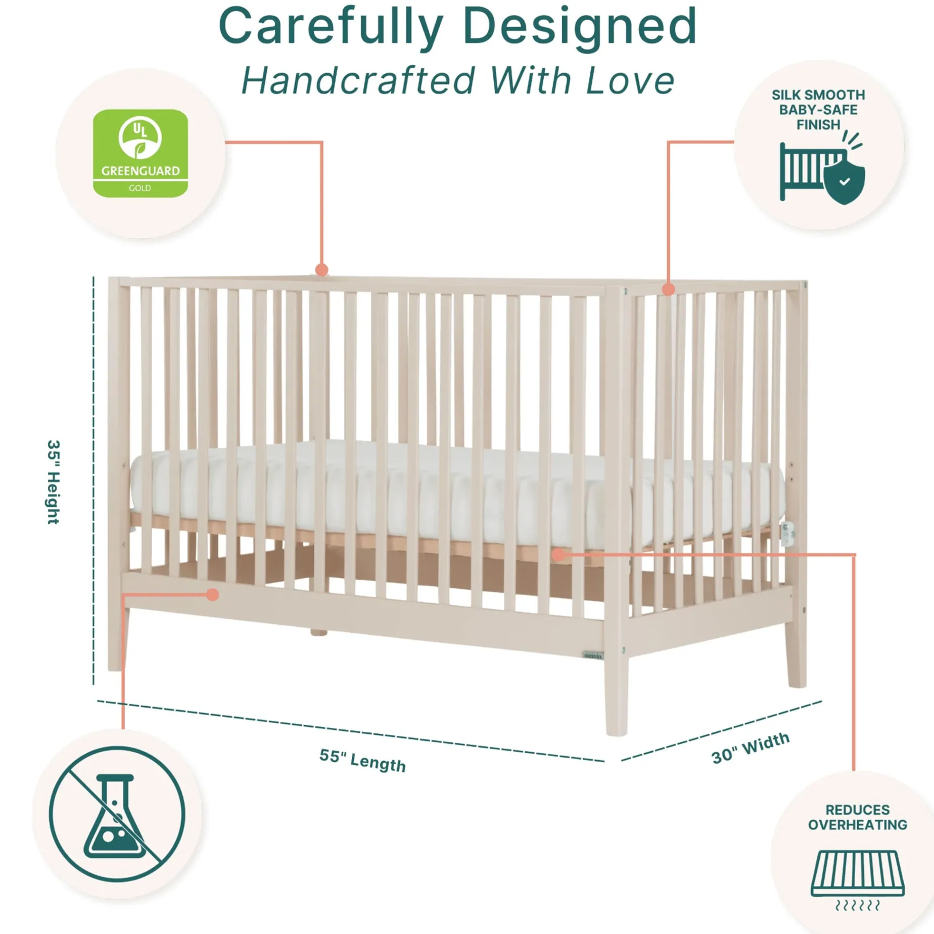 -Solid beechwood, baby-safe finish – including mattress base