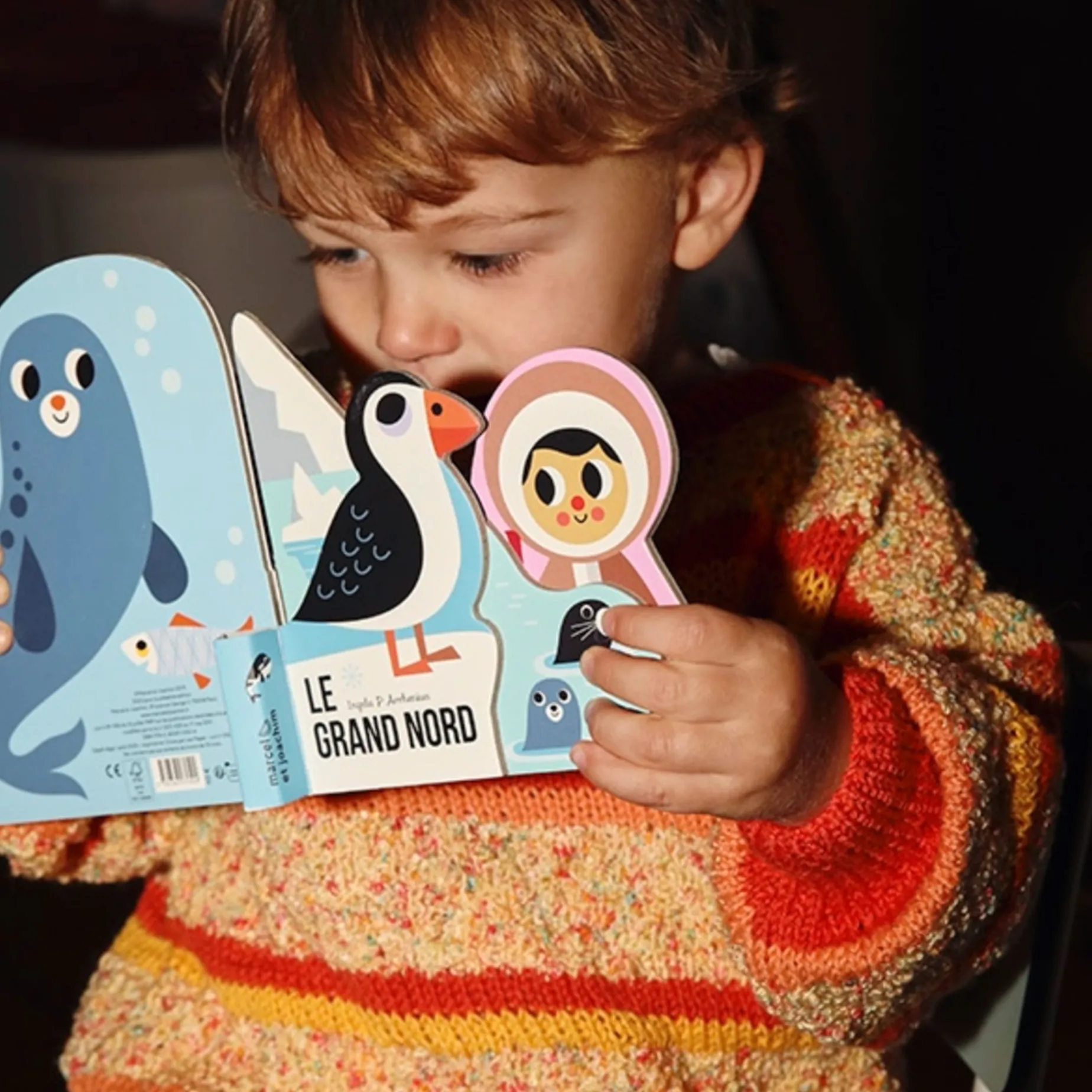 Penguins, sled dogs, polar bears, and the little colorful houses of Greenland… A picture book that also serves as a first documentary, perfectly suited for babies, thanks to Ingela P Arrhenius’s uniquely simple illustrations.