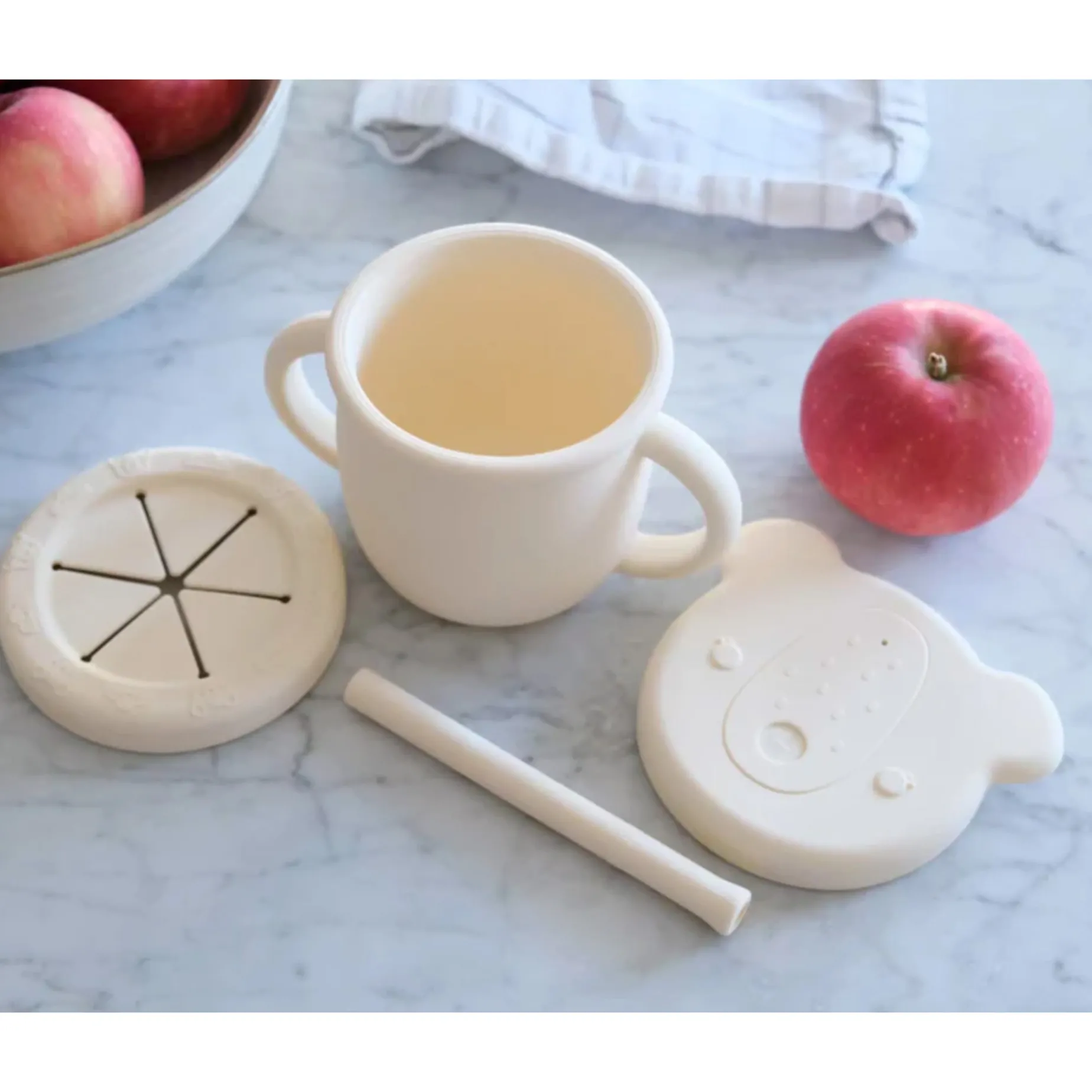 The 2-in-1 silicone cup by Micasso & Co is not only highly resistant, durable, and aesthetically pleasing, but it also doesn’t easily spill. The removable lid features a wall that makes it very sturdy and not easily removable by your little one’s hands. Consequently, the lid stays securely in place during use.