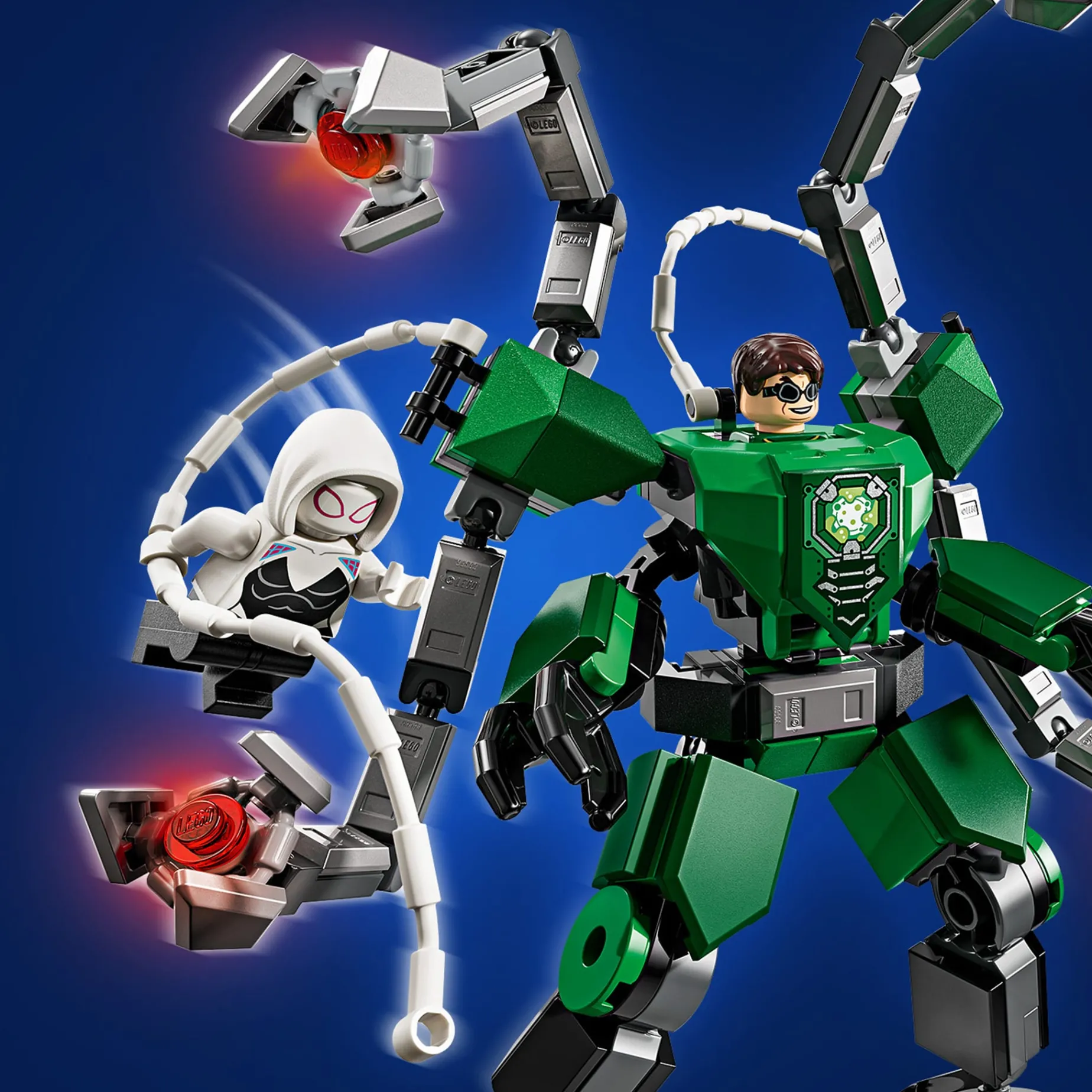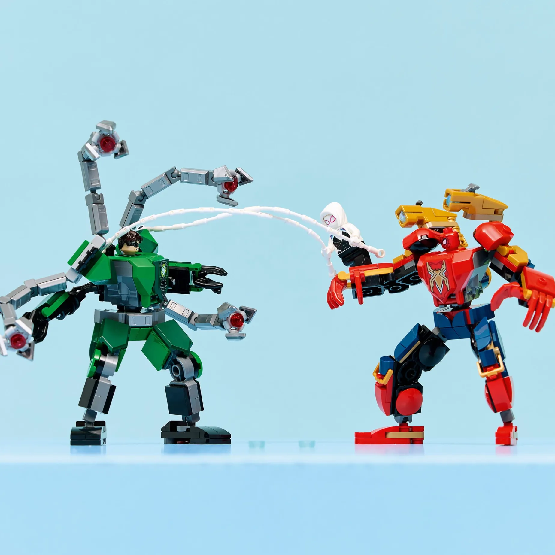 -Le robot de Spider-Man a des fusils à bouton-poussoir; le robot de Doc Ock a des tentacules mobiles