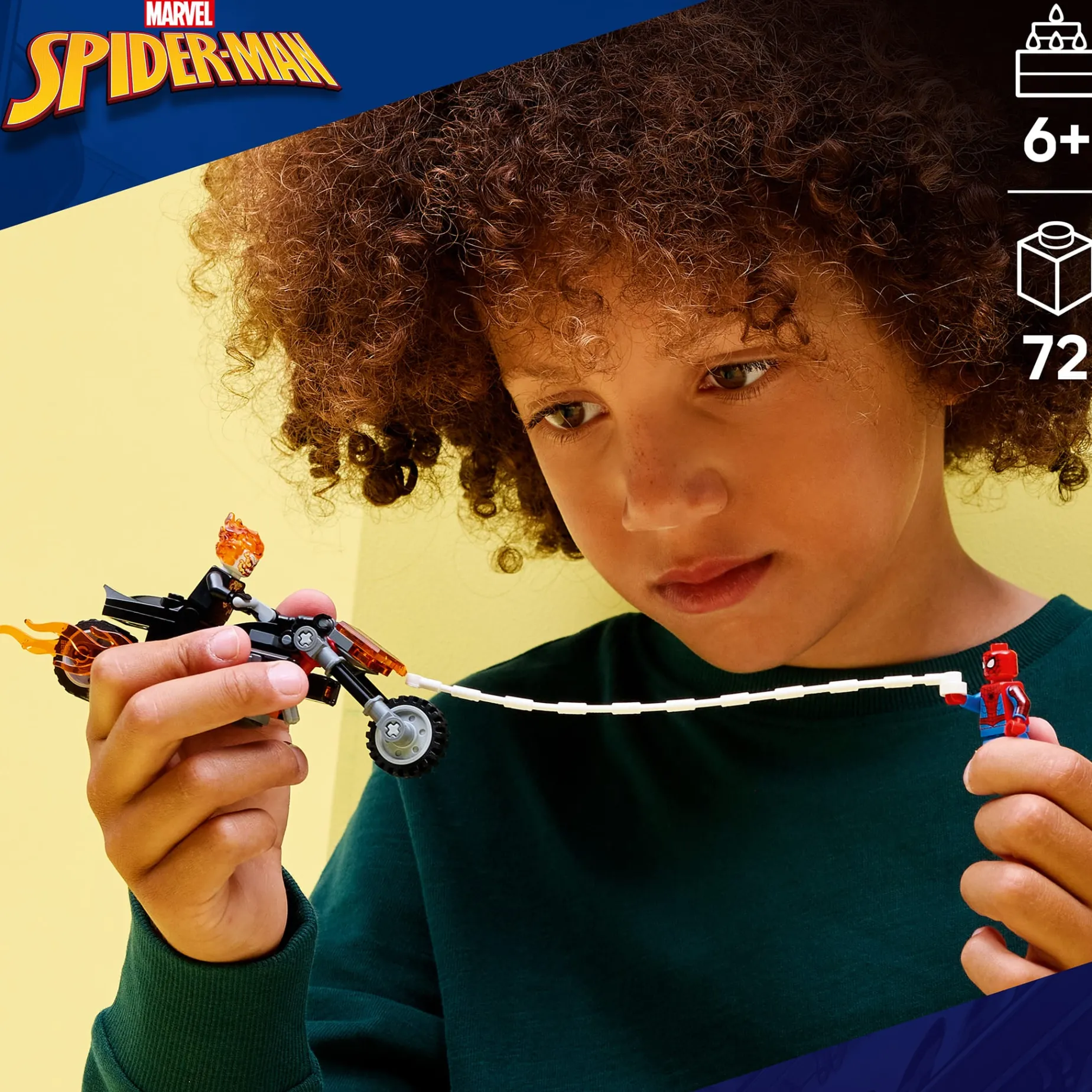 Lancez l’action de poursuite à grande vitesse des superhéros avec le jouet de construction LEGO® ǀ Marvel Spider-Man contre la moto de Ghost Rider (76335) pour les garçons et les filles âgés de 6 ans et plus. La moto prête pour le combat et les 2 figurines dynamiques de Spider-Man et Ghost Rider alimentent le jeu imaginatif des enfants.