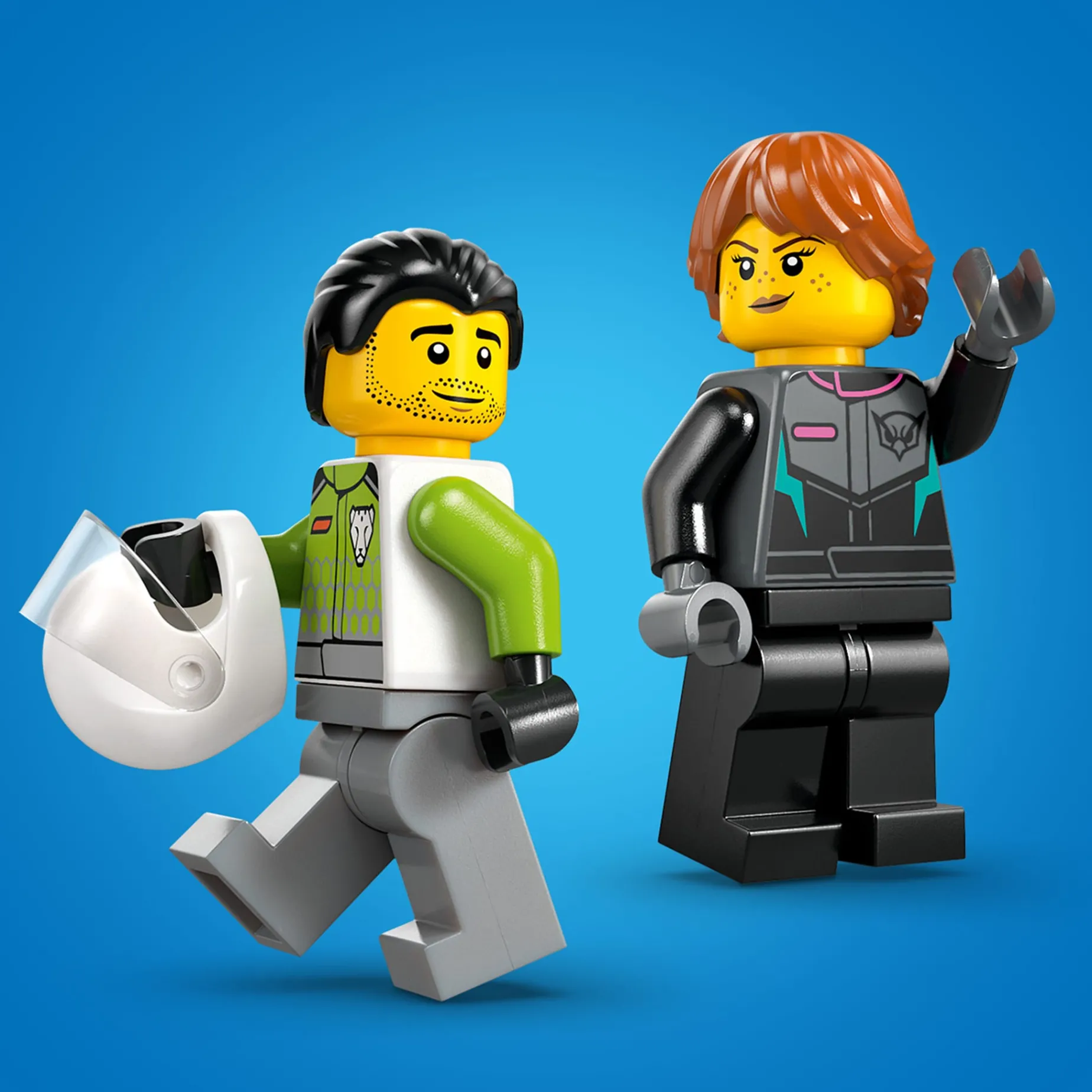 Cet ensemble LEGO® City L’avion à réaction contre la voiture (60489) comprend une supervoiture épurée et un avion à réaction supersonique pour des courses imaginatives et amusantes. L’avion à réaction est doté d’ailes inclinées vers l’arrière, de deux ailerons verticaux et de stabilisateurs. Les enfants peuvent faire glisser un levier pour enclencher les postcombustions de l’avion à réaction et ouvrir l’habitacle de la supervoiture pour accéder à l’intérieur détaillé, équipé d’un siège de course. Il suffit d’ajouter les figurines du pilote et du coureur automobile pour des heures de courses épiques.