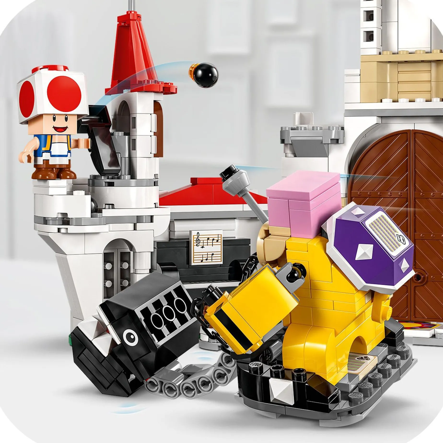 Kids can explore, battle, role-play, and more in an iconic Super Mario™ location with the LEGO® Super Mario™ Battle with Roy at Peach’s Castle (71435) set. This Nintendo® character playset makes a great gift for boys, girls, and gamers aged 7 and up, featuring a buildable princess castle model that opens up for adventure. It includes easy-to-rebuild collapsing walls, a tower, a catapult, a rotating throne, and a garden fountain. There are also 3 LEGO Super Mario figures: Roy (appearing for the first time in a LEGO Super Mario set), a Boo, and Toad.