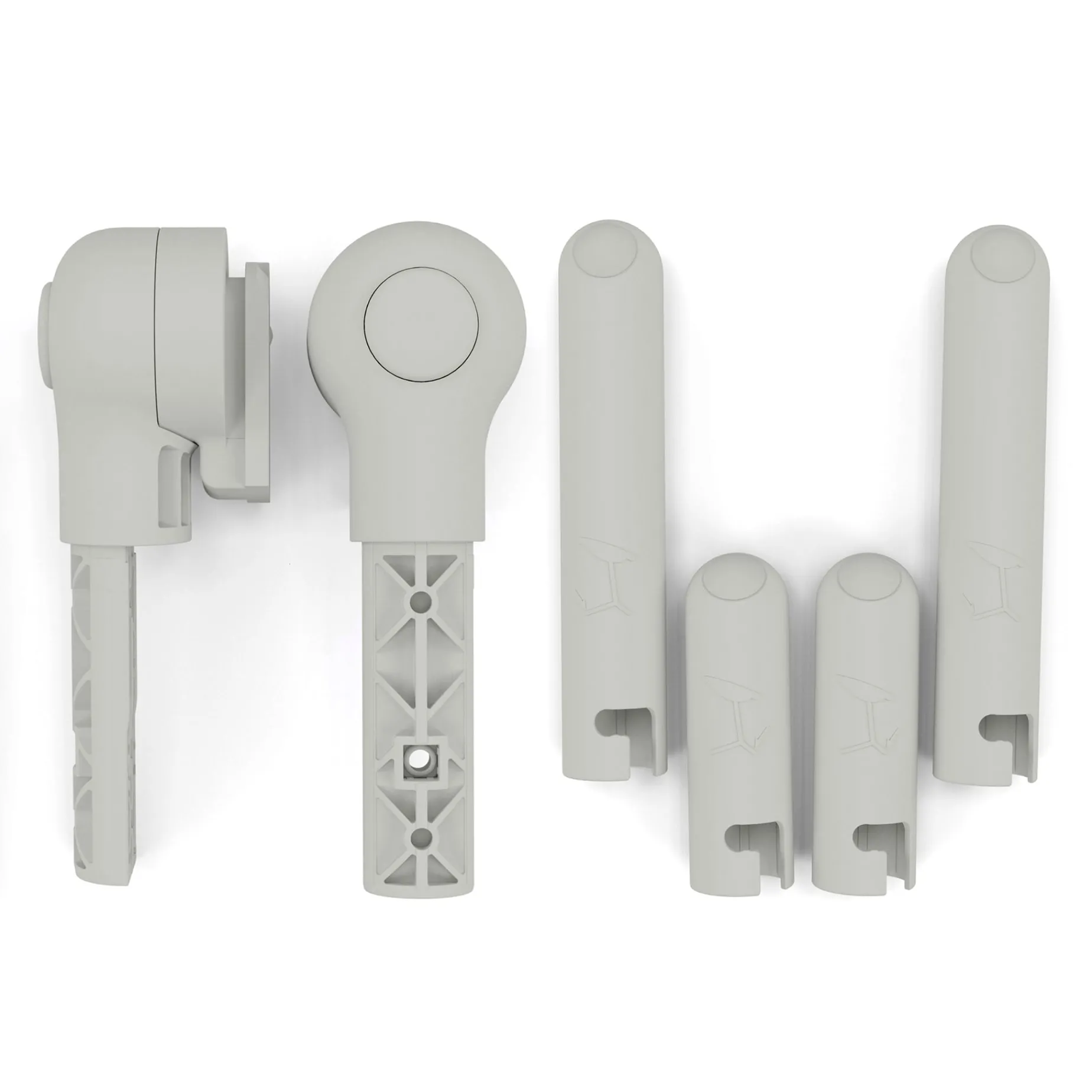 The CYBEX LEMO Adapter Set includes the bouncer adapter for attaching the LEMO Bouncer Nest to the frame and leg extensions for extra stability.