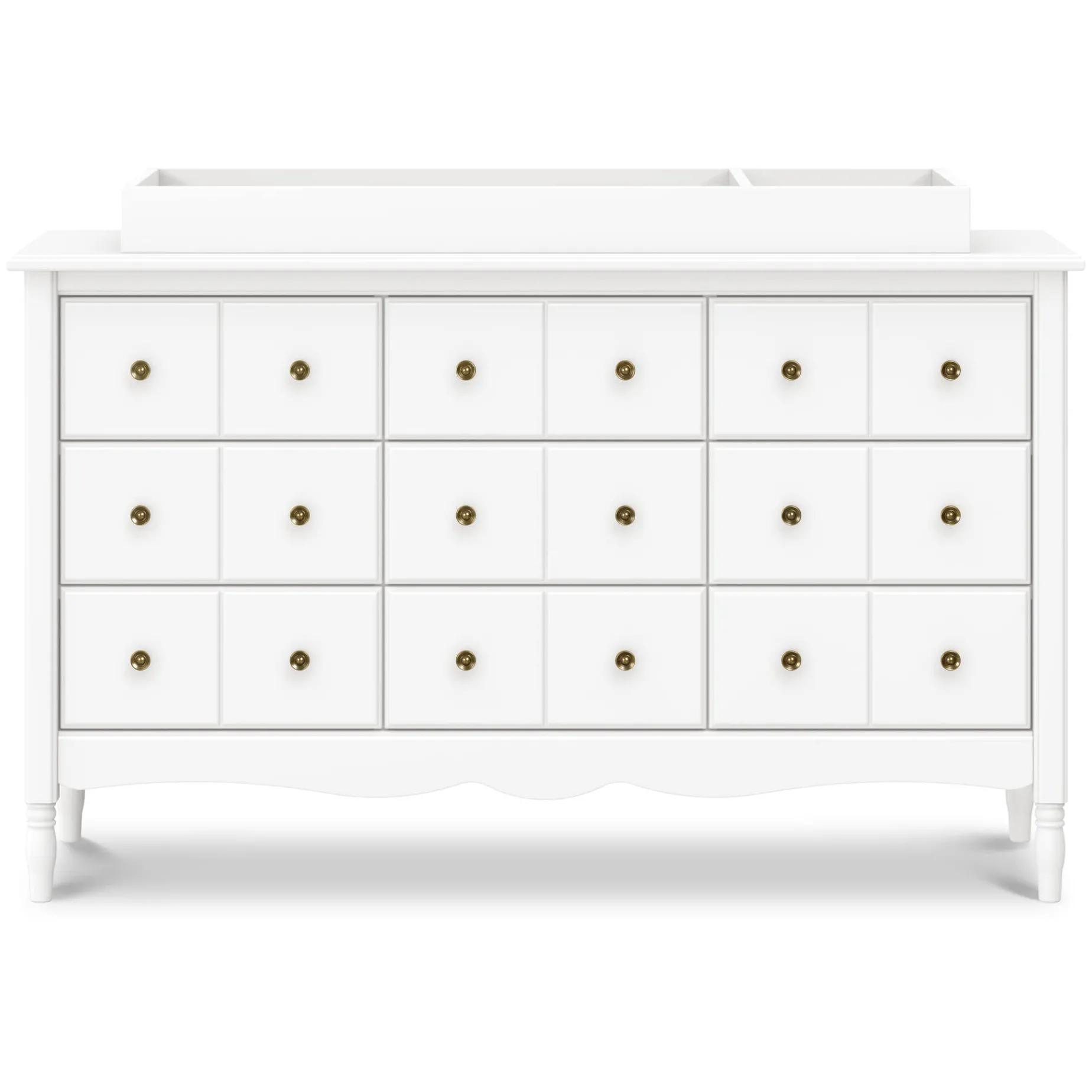The vintage-inspired Liberty 9-Drawer Dresser brings timeless charm and generous storage to your nursery or any room in the home. Featuring apothecary-style drawer fronts, classic tapered feet, and a gracefully scalloped apron, every detail is crafted with care. Designed to complement our best-selling Liberty, Abigail, and Winston cribs, it’s the perfect blend of function and style.